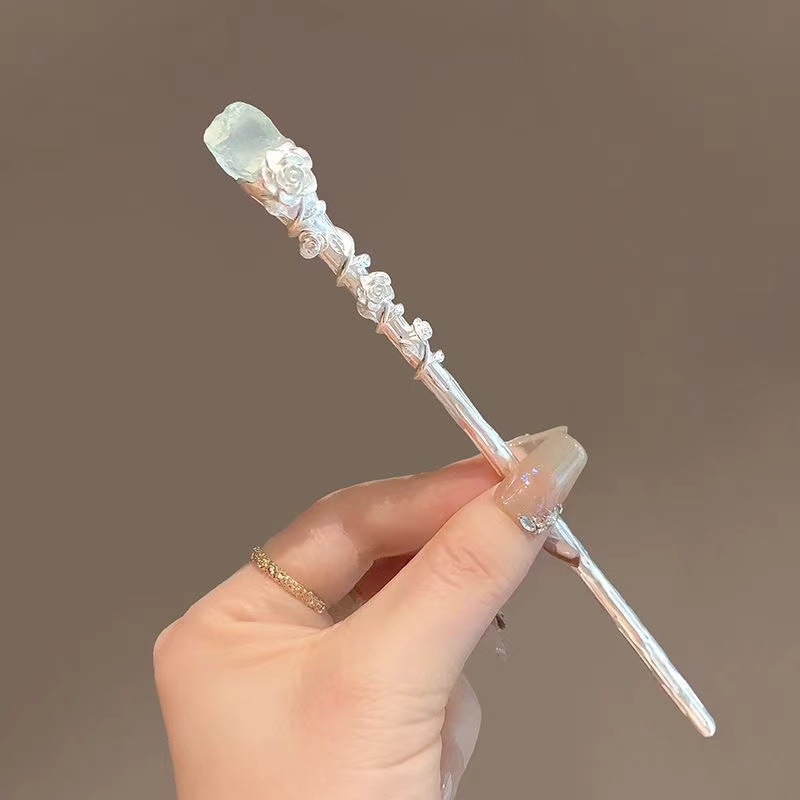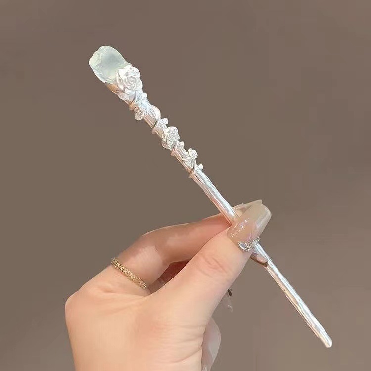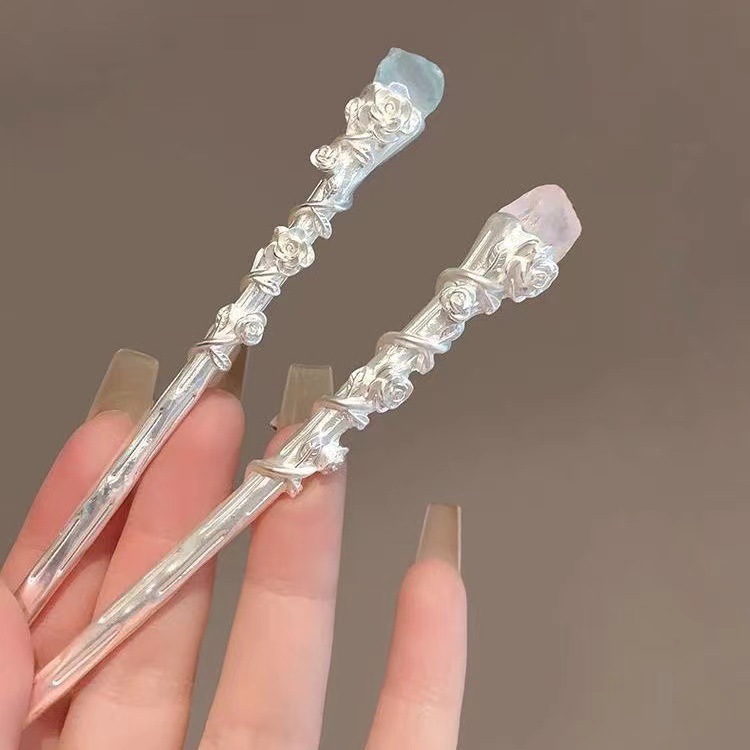 ins超仙荆棘气质玫瑰花发簪高级感金属新中式盘发簪子汉服盘发钗