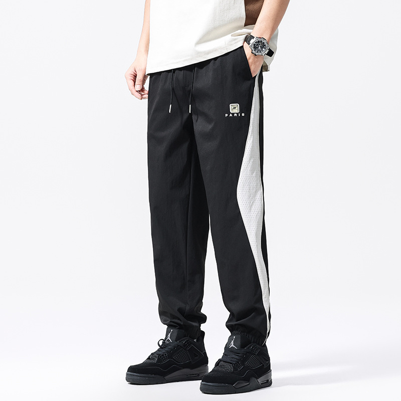 拼色休闲裤男士宽松大码九分裤子男款夏季薄款速干透气束脚运动裤