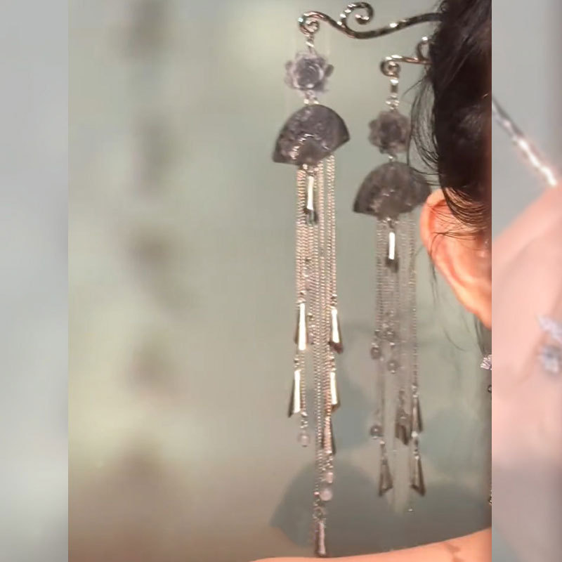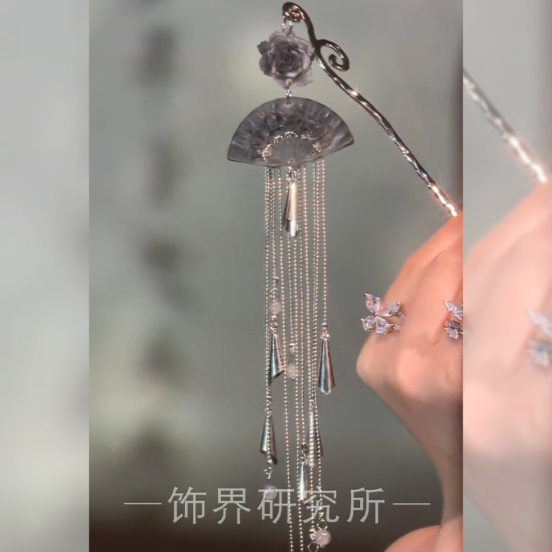 玫瑰扇子流苏发簪新中式高级感发钗国风清冷感步摇新款盘发头饰女