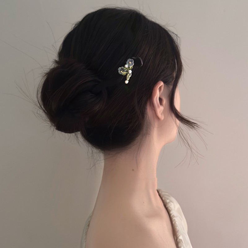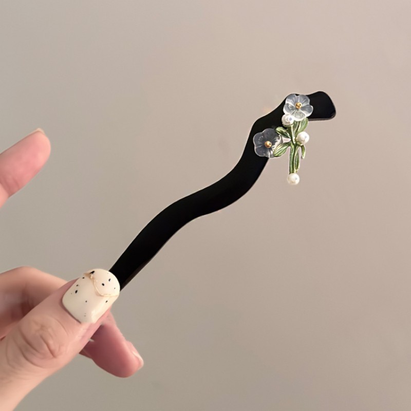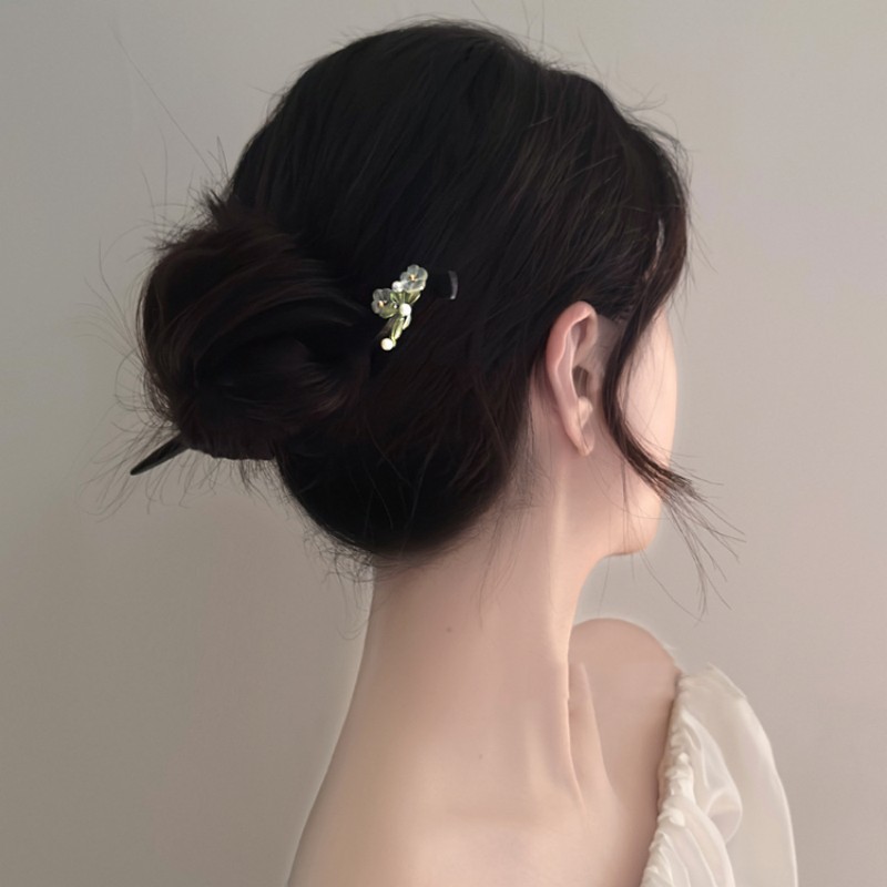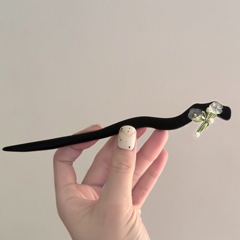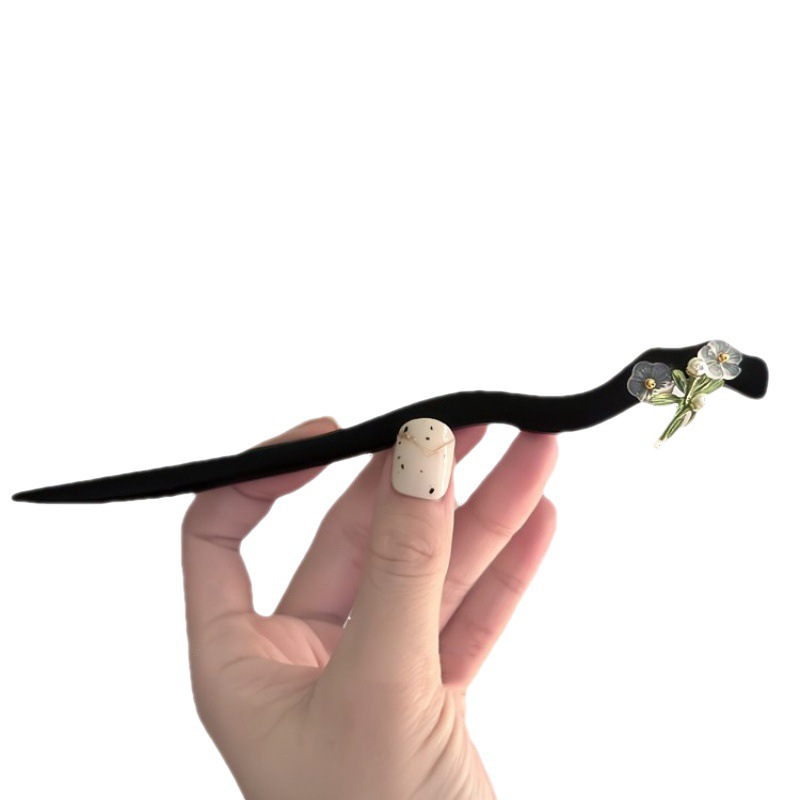 绿野山茶复古风新中式黑木质花朵发簪高级感小众简约女式盘发钗子