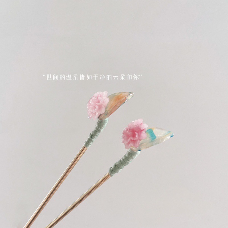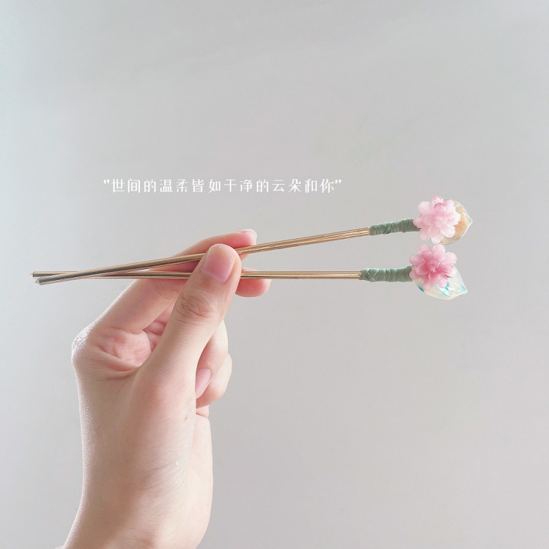 小清新粉色小花流苏发簪女夏简约现代步摇高级感盘发簪子汉服发钗