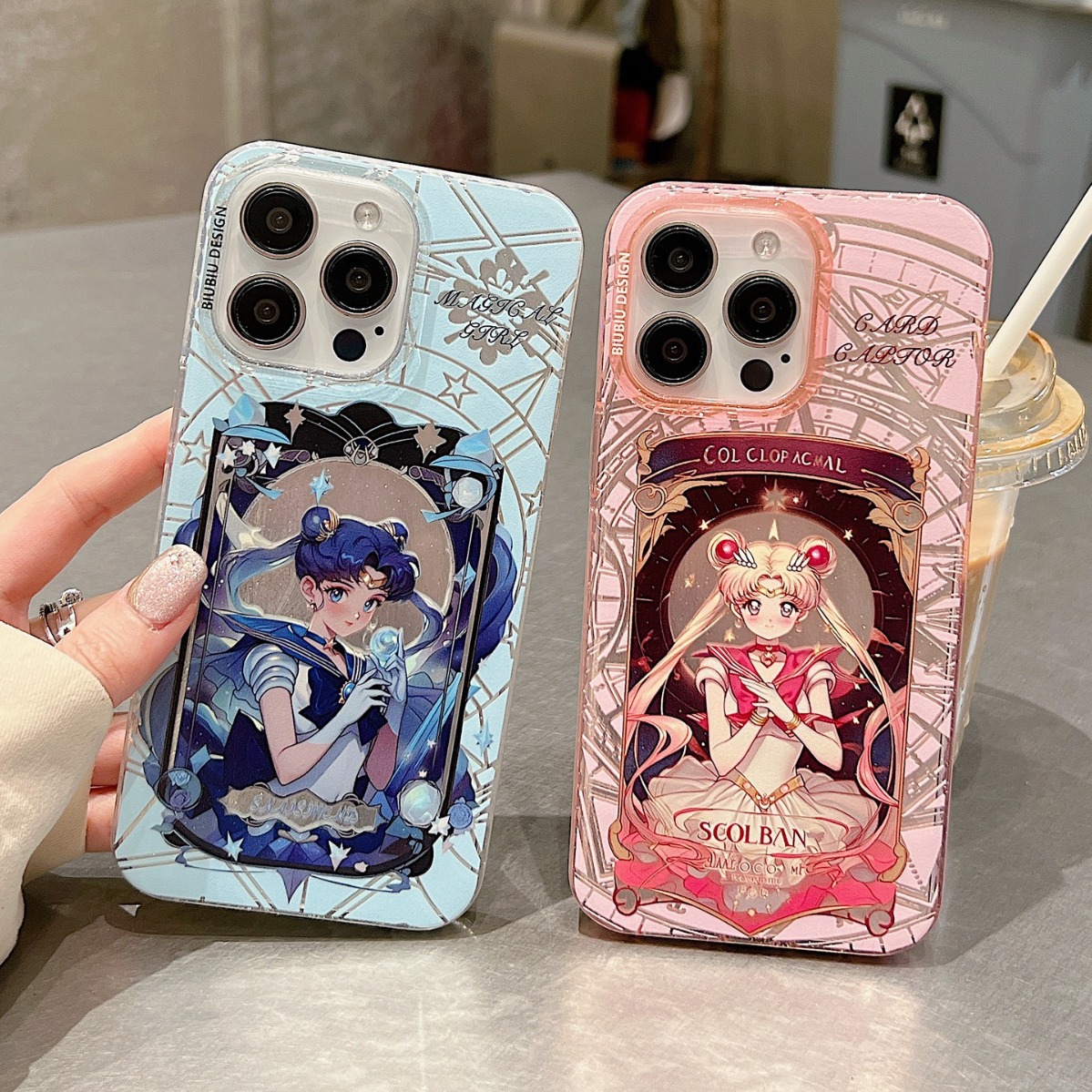 卡通ins炫彩美少女羽纱适用15ProMax手机壳防摔14pro苹果13闪粉女