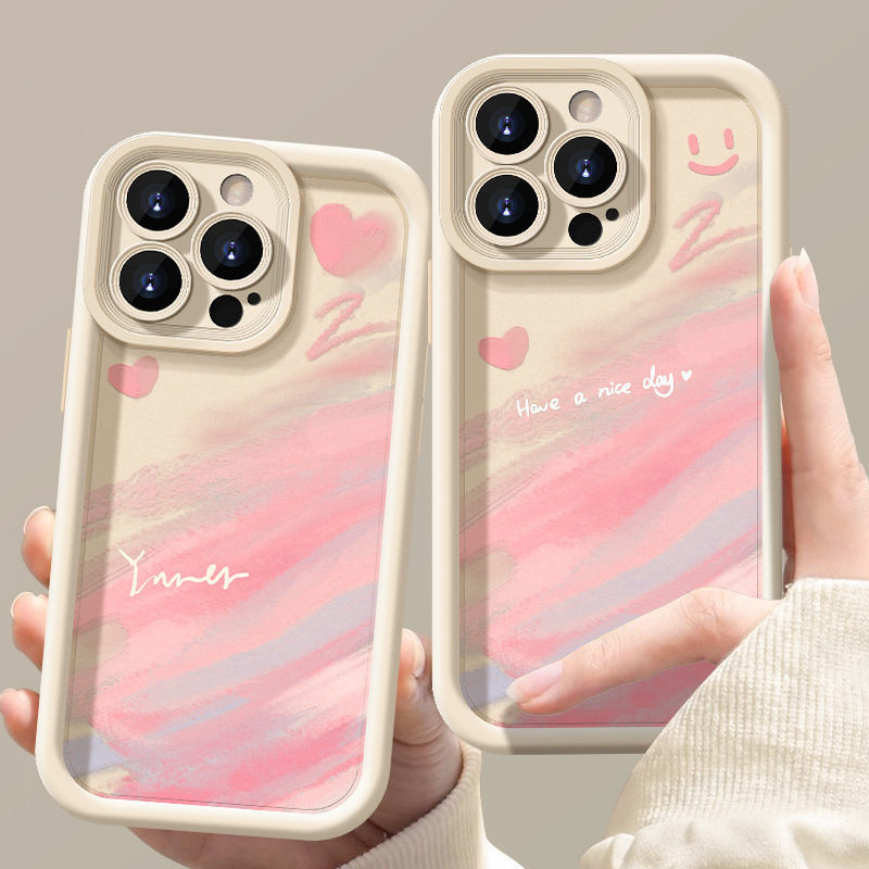 阶梯小众粉色晕染适用苹果15PROMAX手机壳粉色晕染15/14硅胶