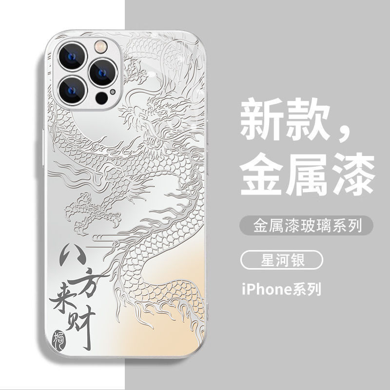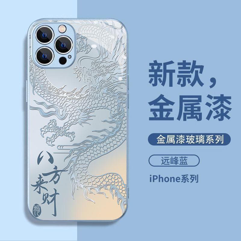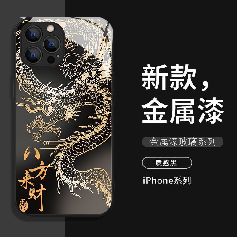 八方来财玻璃适用苹果15/14/13手机壳iPhone12全包11promax