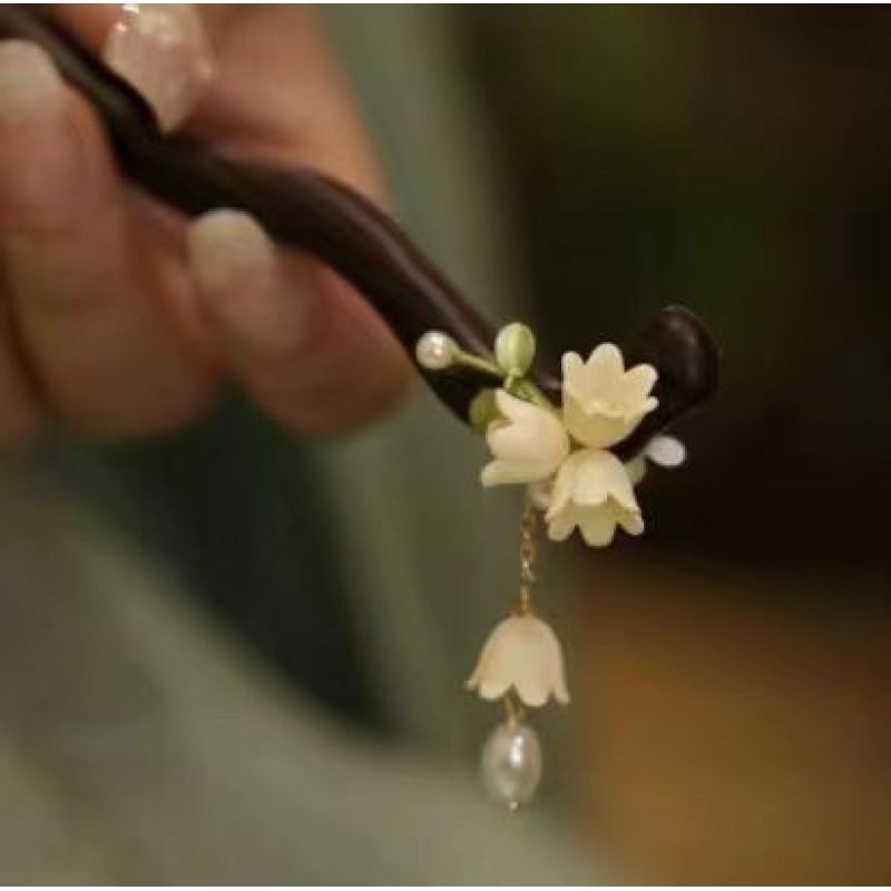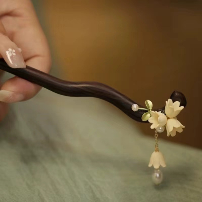 木簪子古风铃兰花流苏发簪新中式清冷感简约现代汉服旗袍盘发头饰