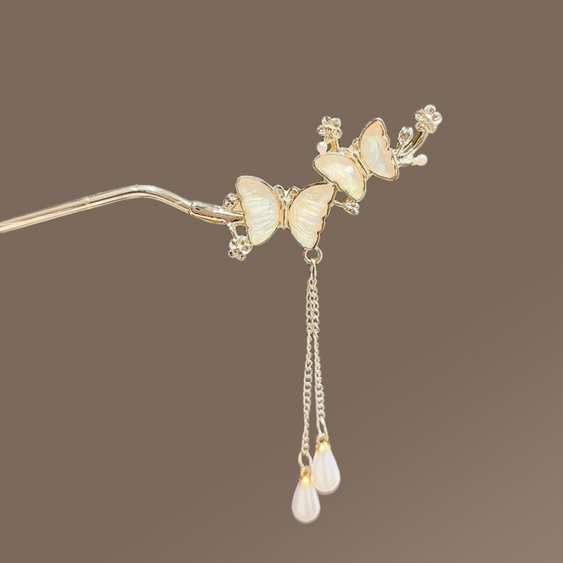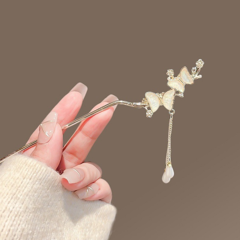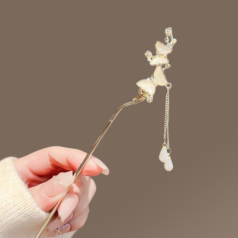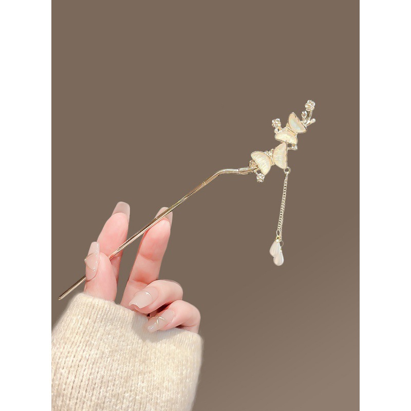 ins新中式发饰鎏金蝴蝶发簪女古苏步摇盘发簪子现代简约发钗头饰