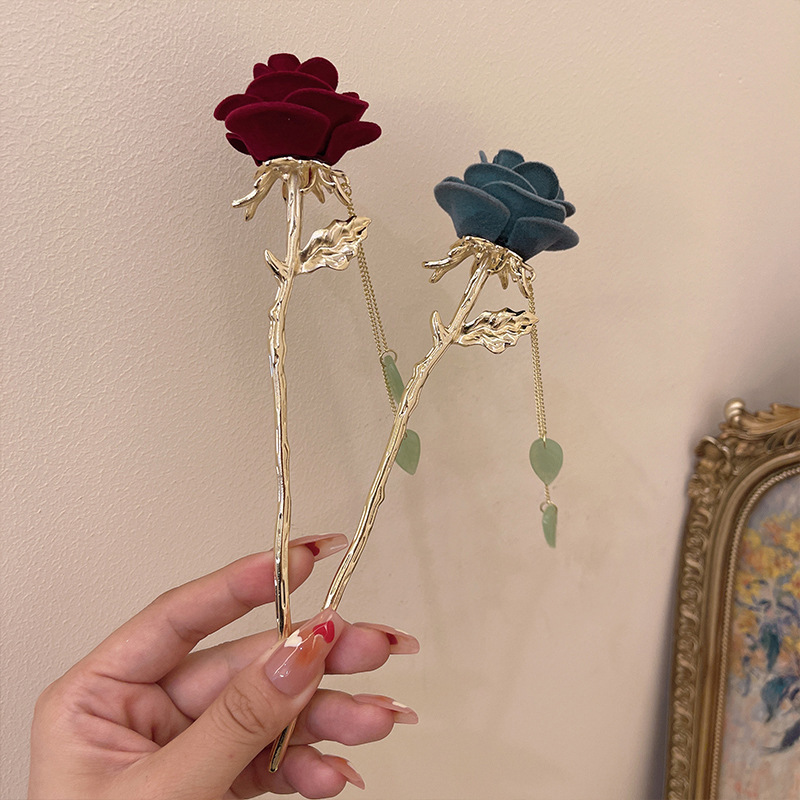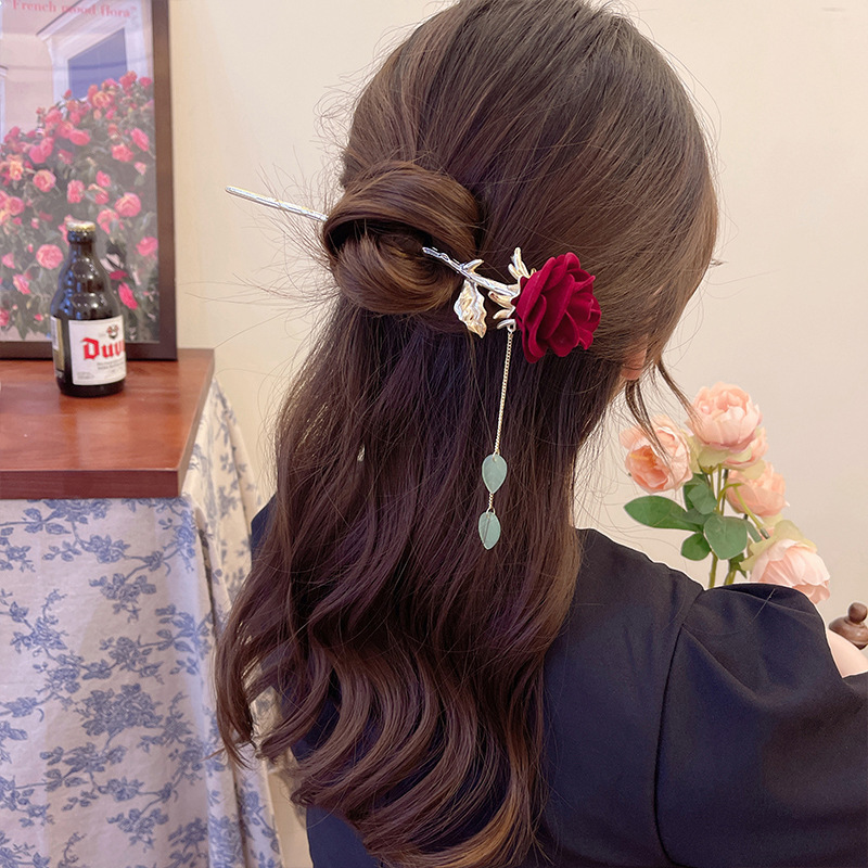 热烈的爱~复古玫瑰发簪古风高级感簪子女简约现代优雅丸子头发饰
