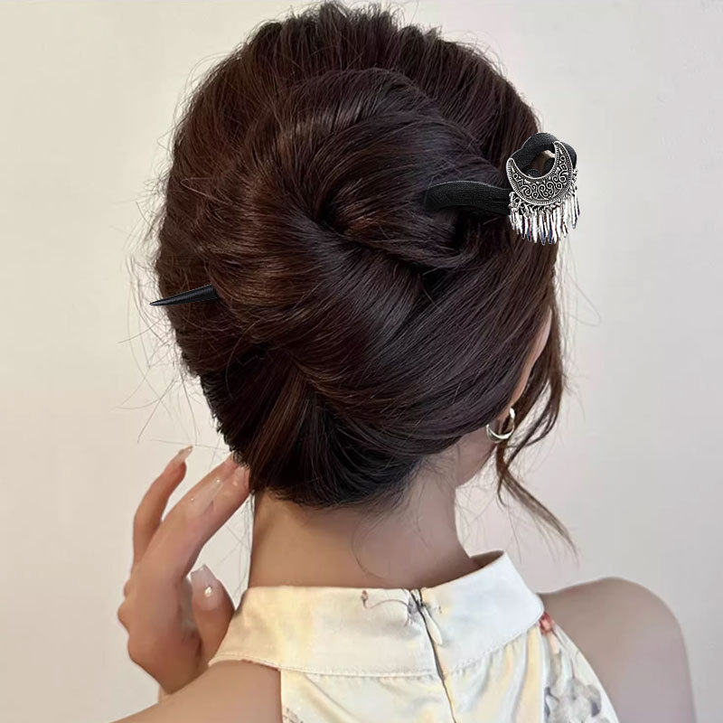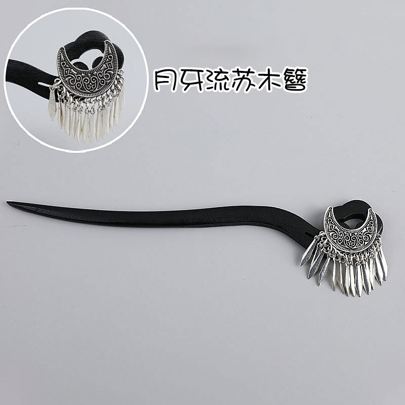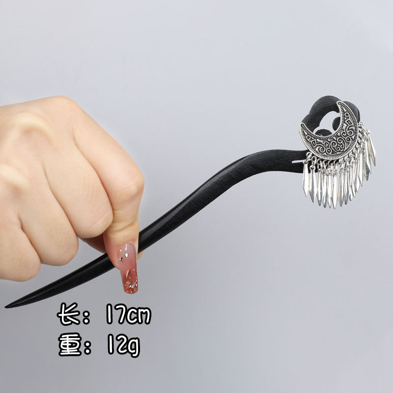 手工木质发簪女日常仿黑檀木古风月牙木发钗简约盘发簪子汉服头饰