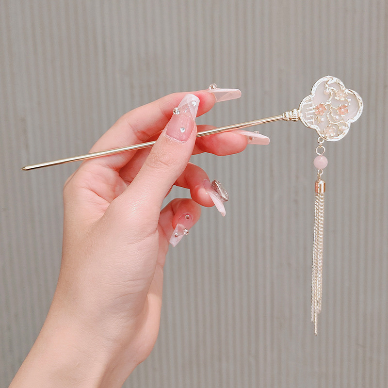 简约现代新中式梅花发簪女高级感盘发发钗流苏古风簪子汉服头饰