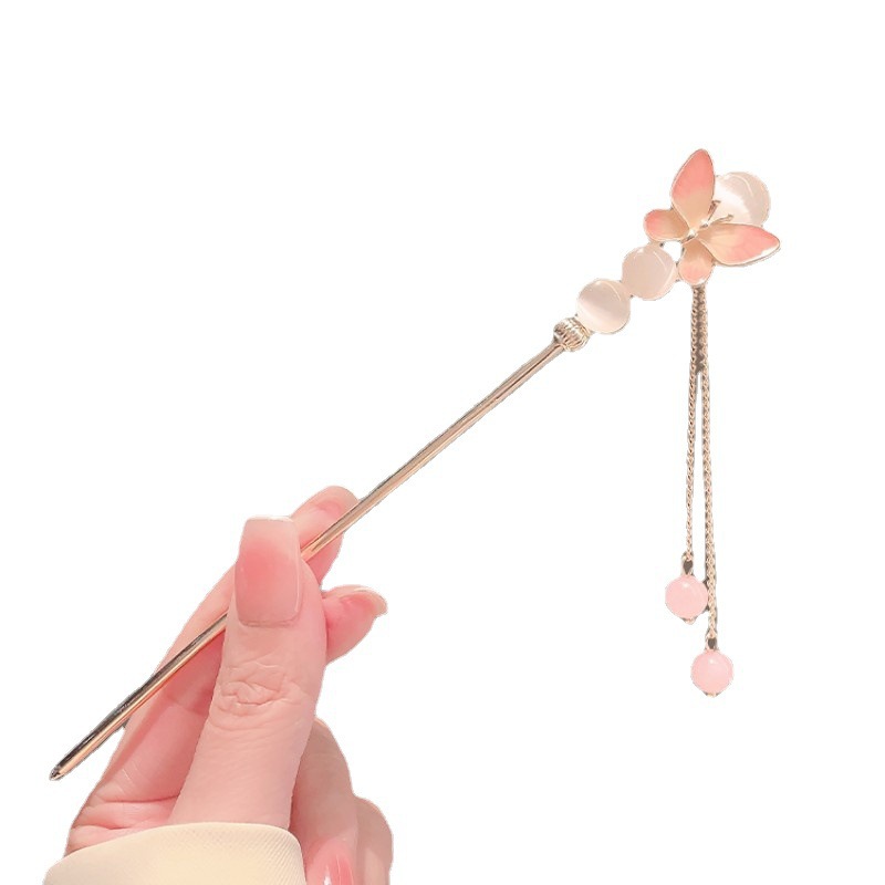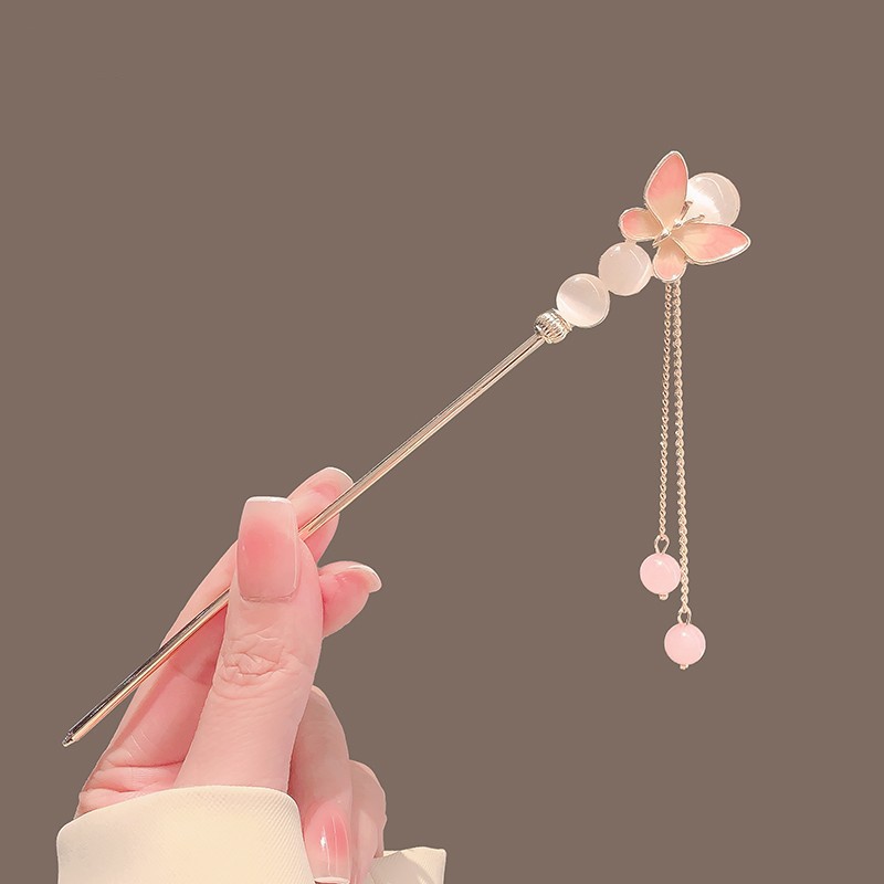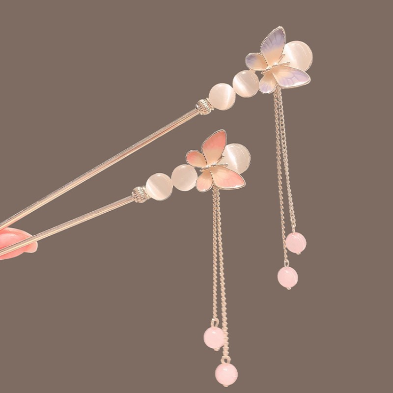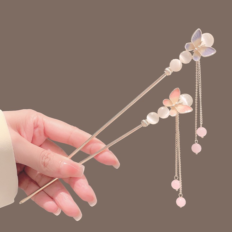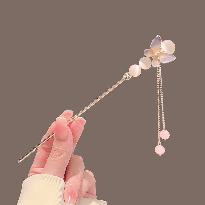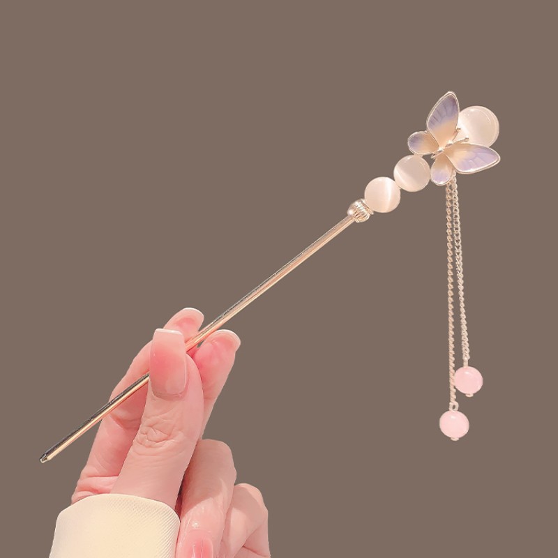 新中式发簪女新中式古苏蓝蝴蝶猫眼石后脑勺盘发器汉服旗袍头饰