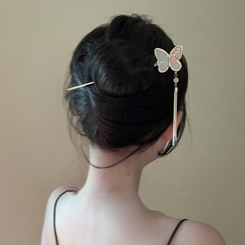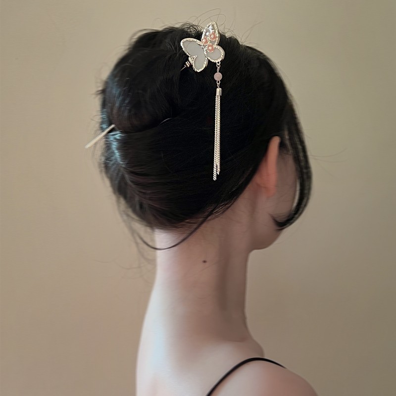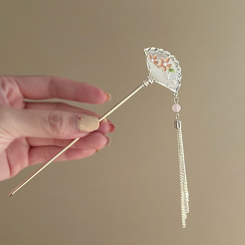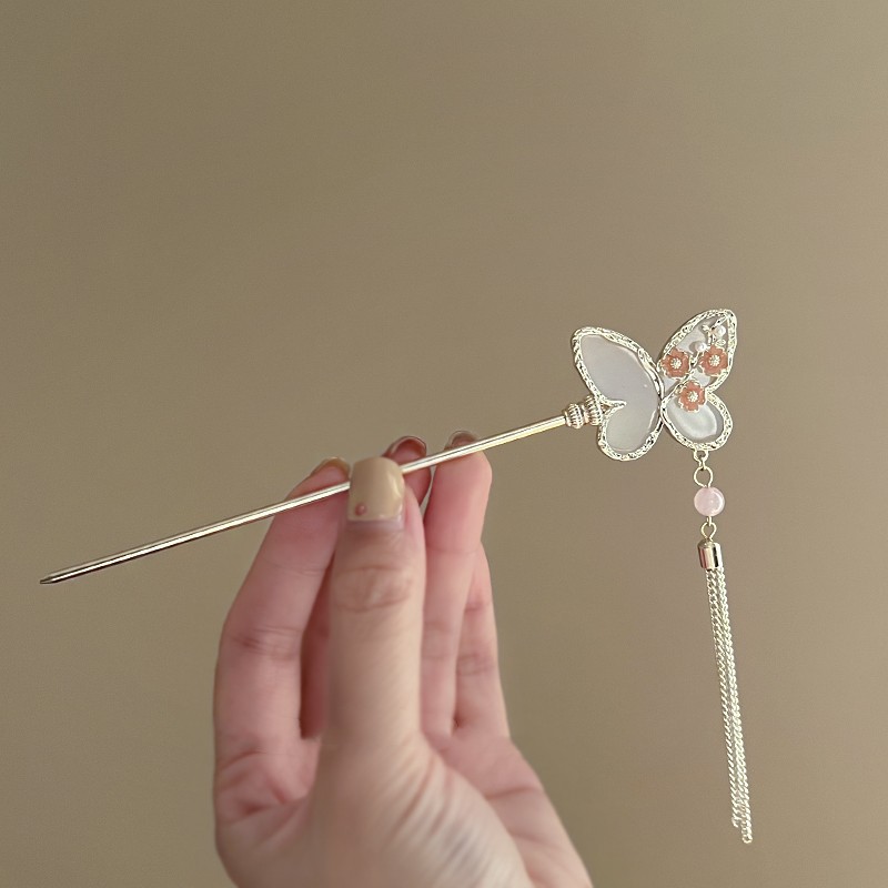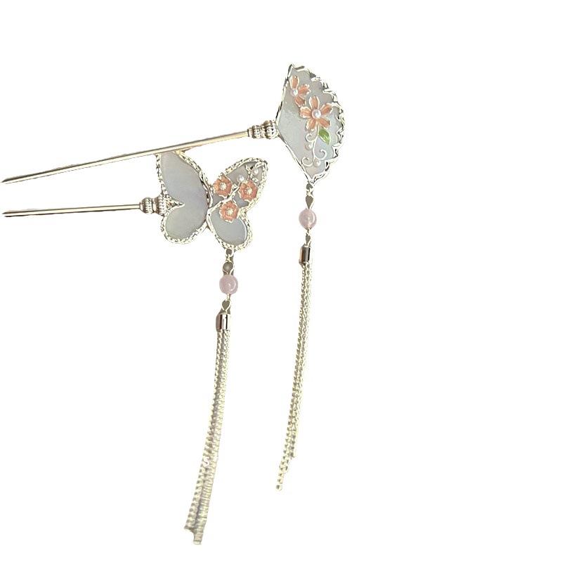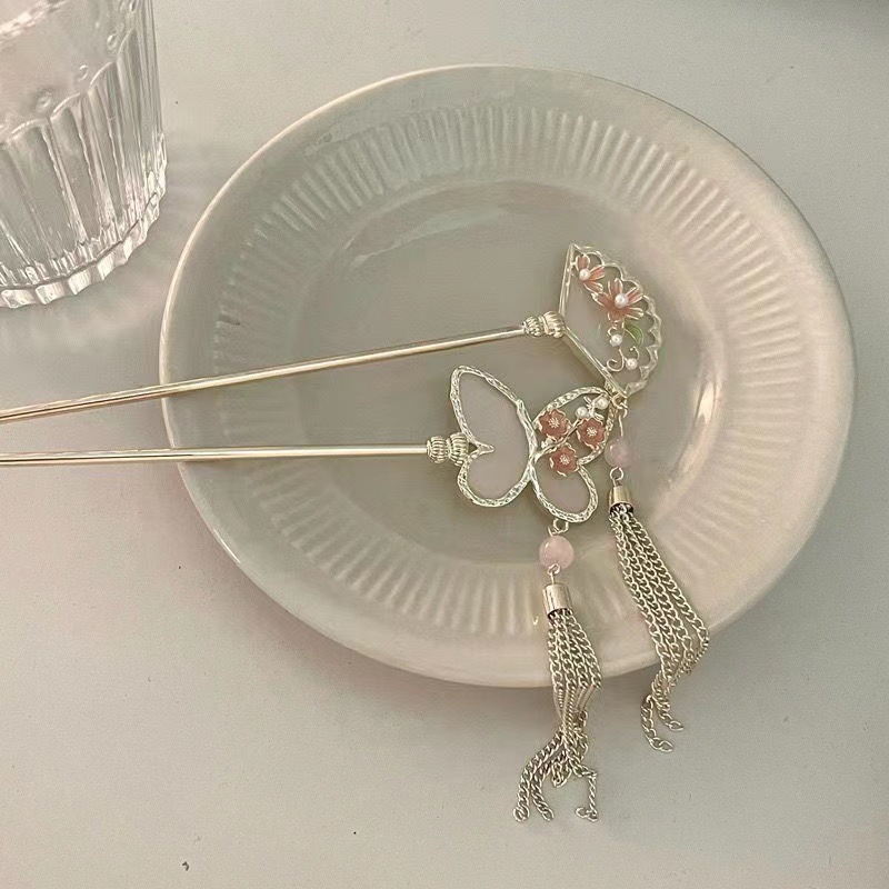 国风扇形蝴蝶流苏发钗花朵高级感个性头饰新中式汉服发饰甜美气质