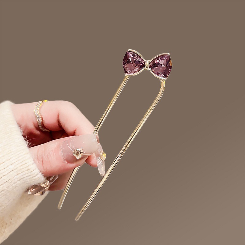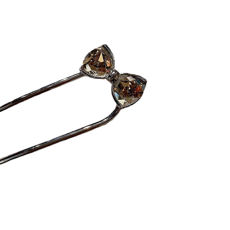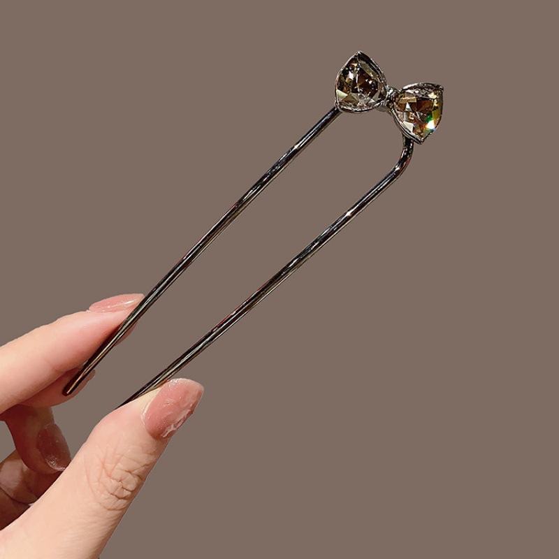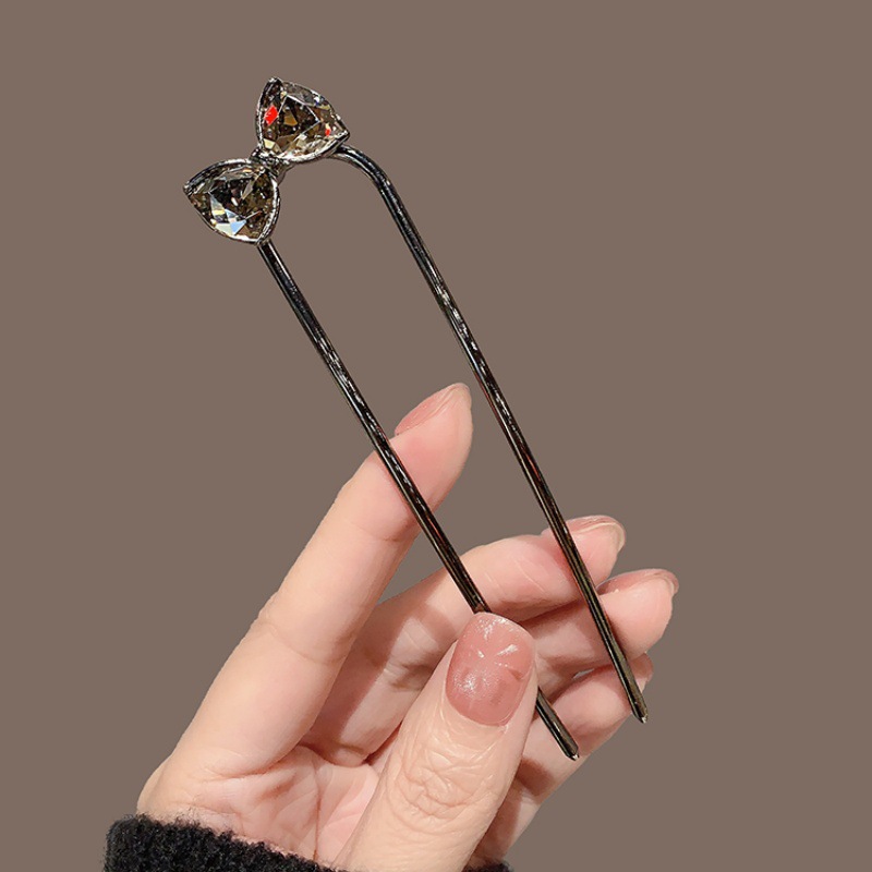 优雅黑色气质高级感发钗少女蝴蝶结盘发U型发簪盘发簪子头饰女新
