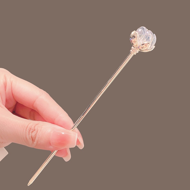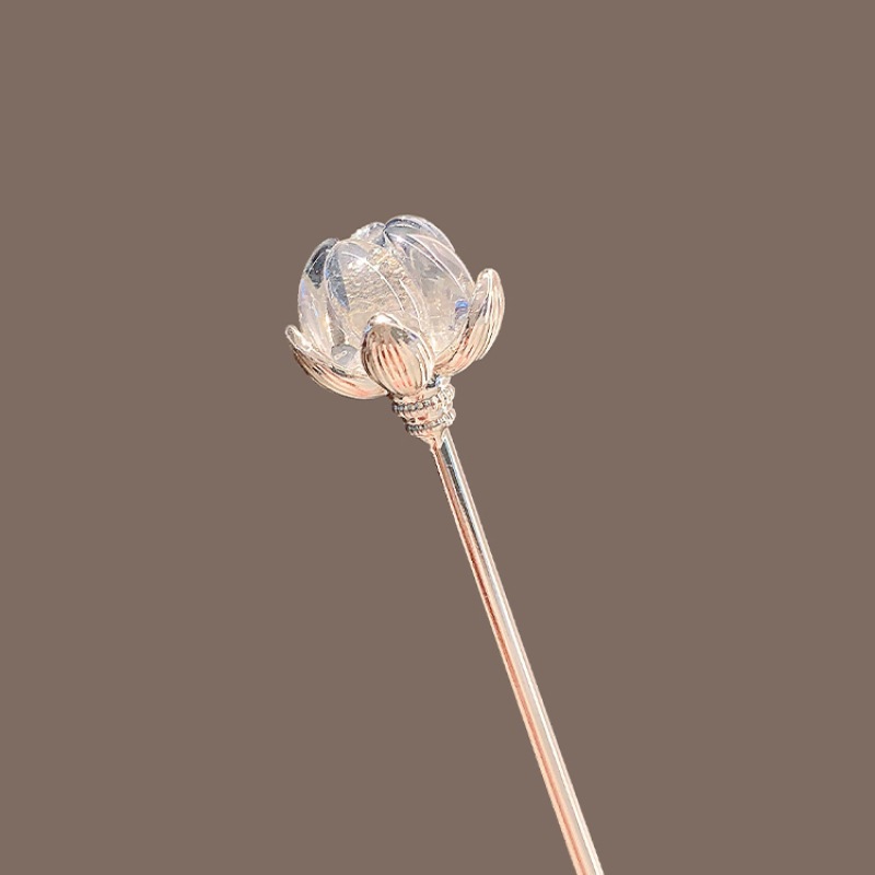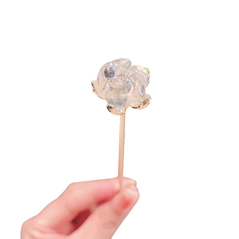 亚克力莲花发簪女古风新中式简约现代高级感发钗花朵步摇汉服簪子