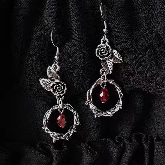 哥特荆棘玫瑰耳环花朵耳坠玫瑰花吊坠暗黑耳饰