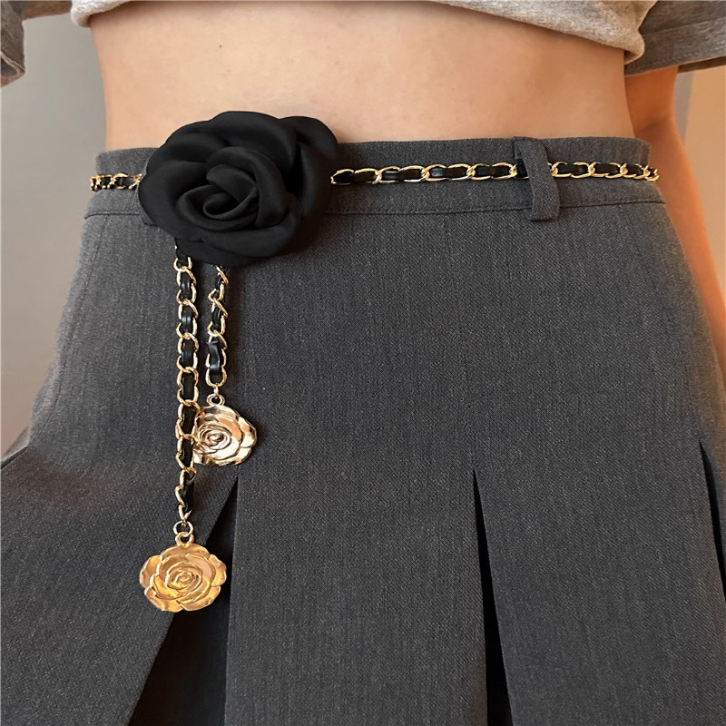 小香风山茶花腰链配饰女气质花朵链条腰带装饰配连衣裙链子高级感