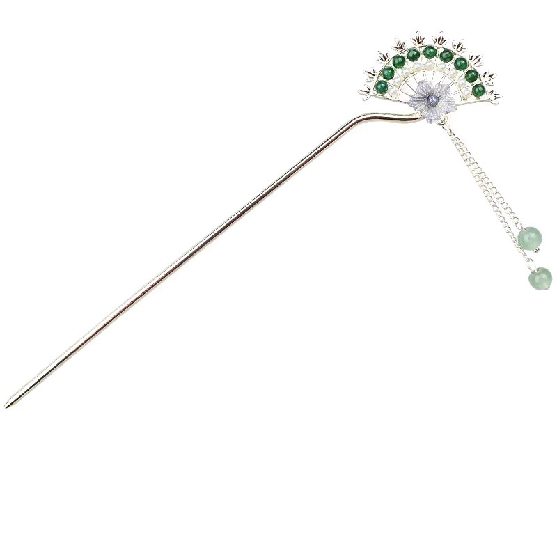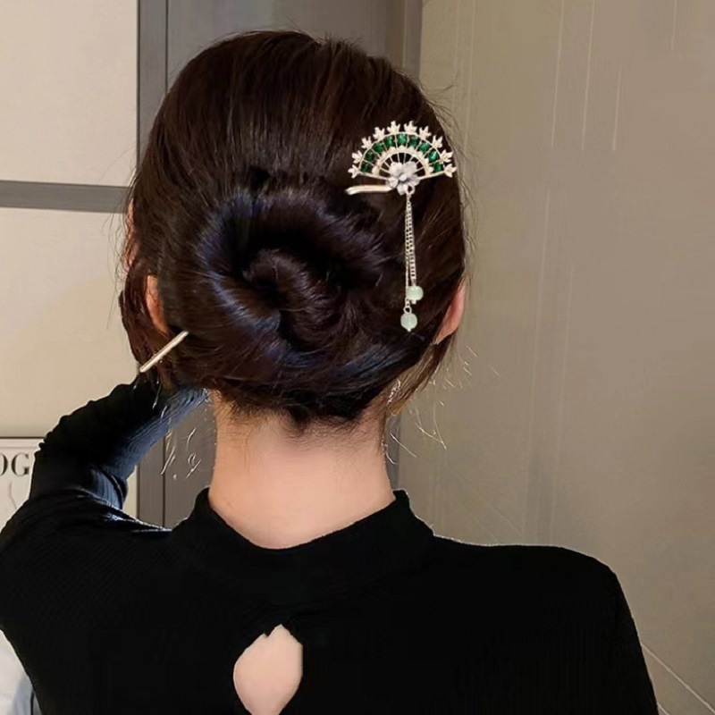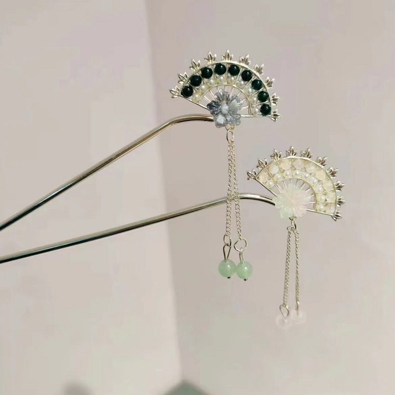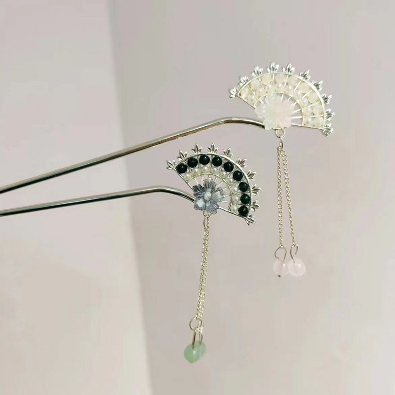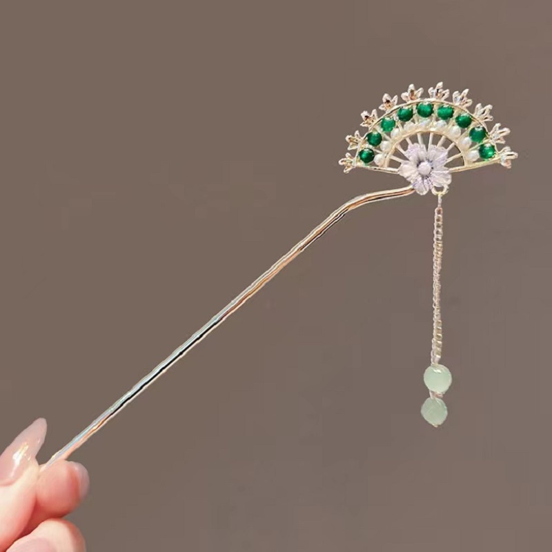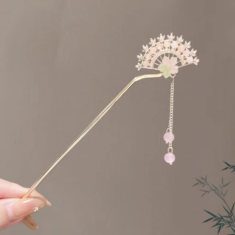 气质古风步摇花朵扇形发簪女汉服旗袍发钗新中式盘发流苏簪子头饰