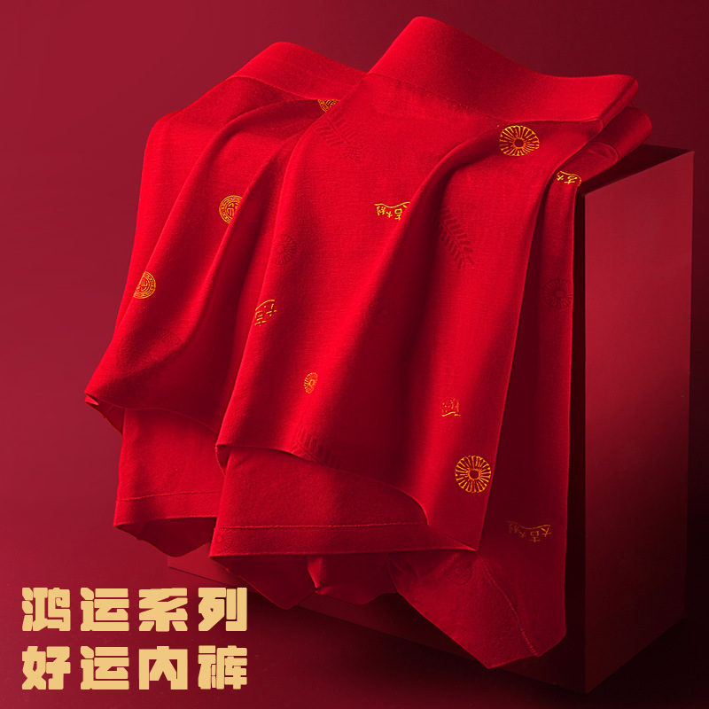 新款本命年内裤男士红内裤中腰平角裤莫代尔四角裤福字