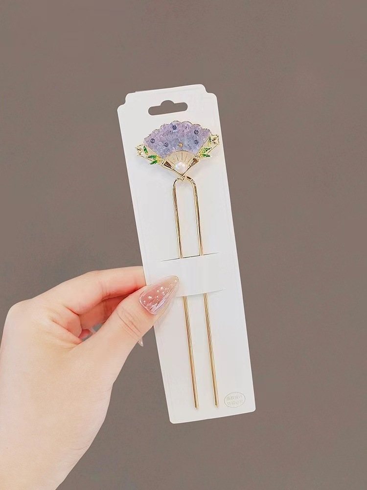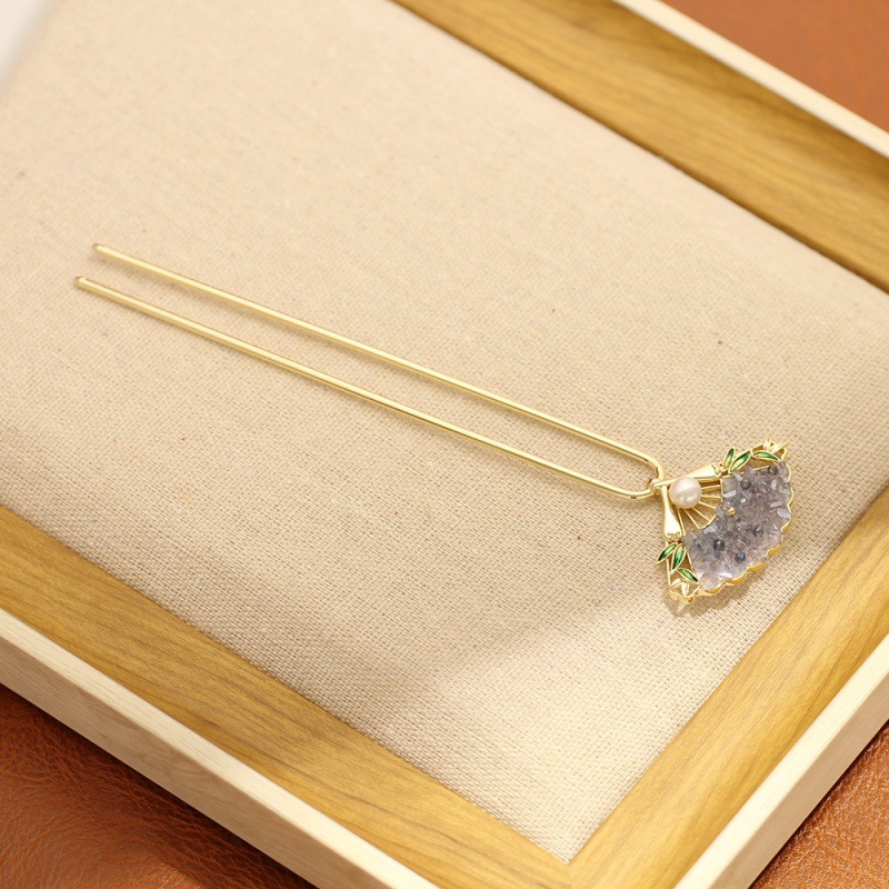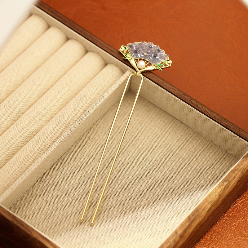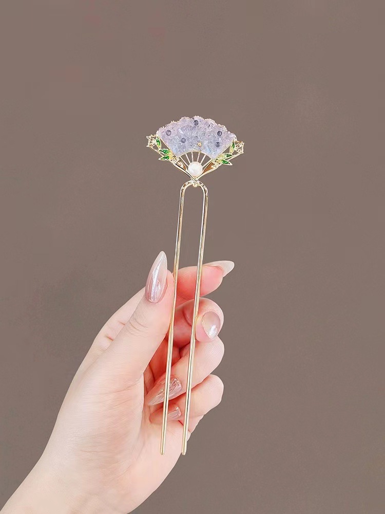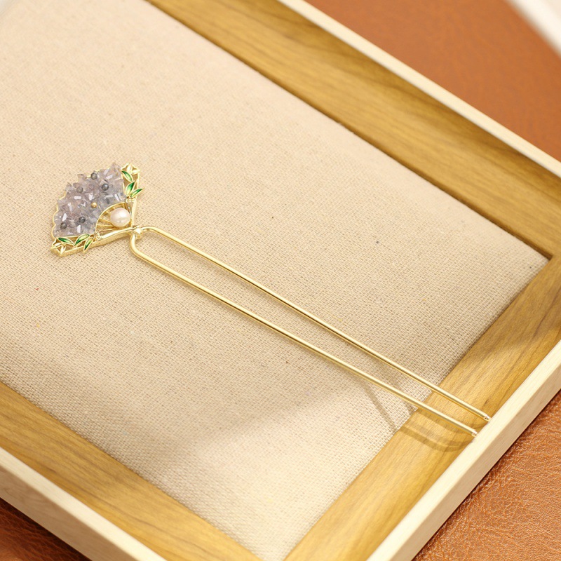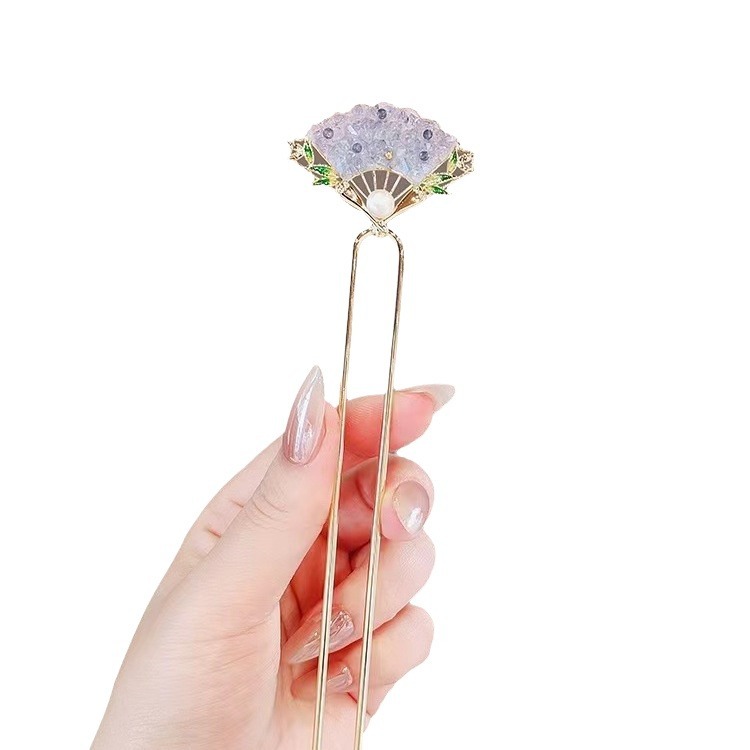 中国风经典扇形人造水晶发簪气质百搭盘头发饰国风汉服配饰头饰女