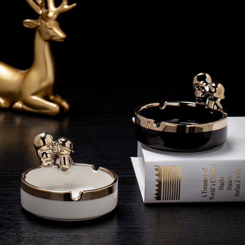 创意陶瓷烟灰缸家居客厅北欧时尚办公桌茶几摆件烟缸日用百货