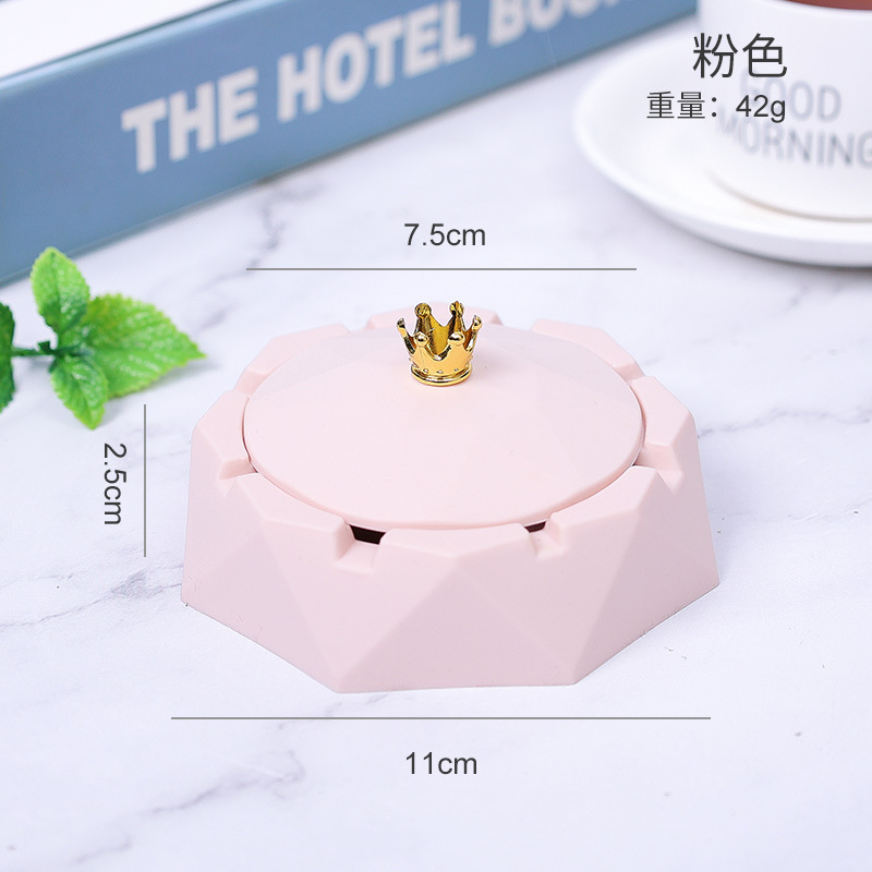 北欧简约烟灰缸 办公家居摆件皇冠烟灰缸带盖子不锈钢内胆烟灰缸