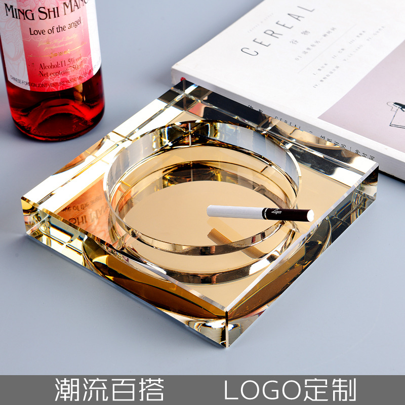 水晶玻璃烟灰缸创意家用办公客厅轻奢高级感ktv酒吧商用酒店烟缸