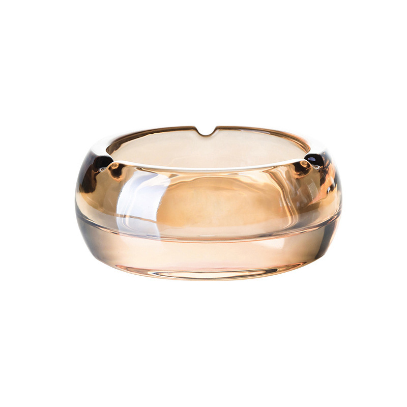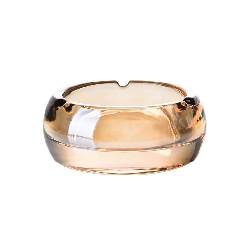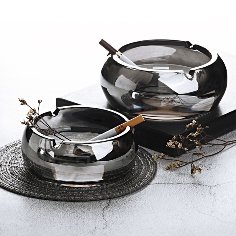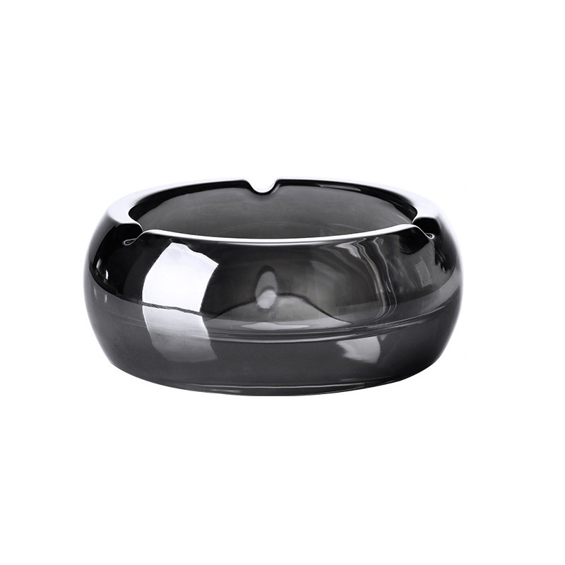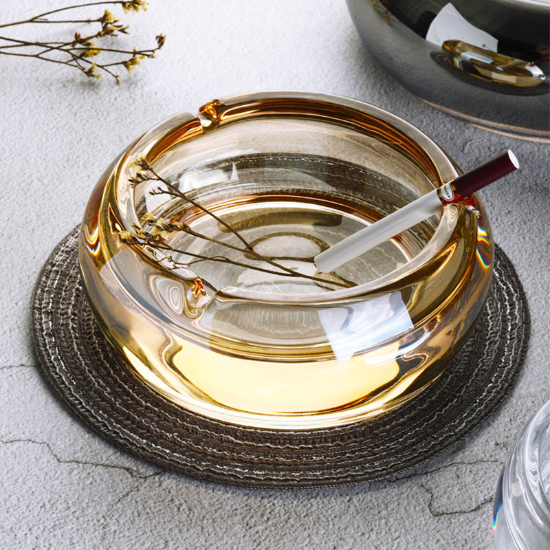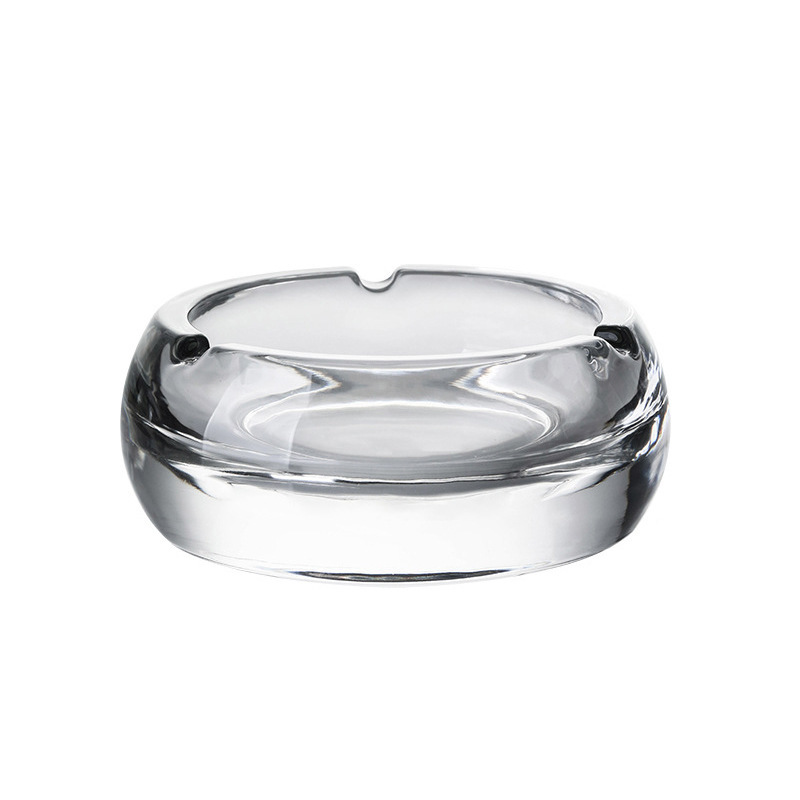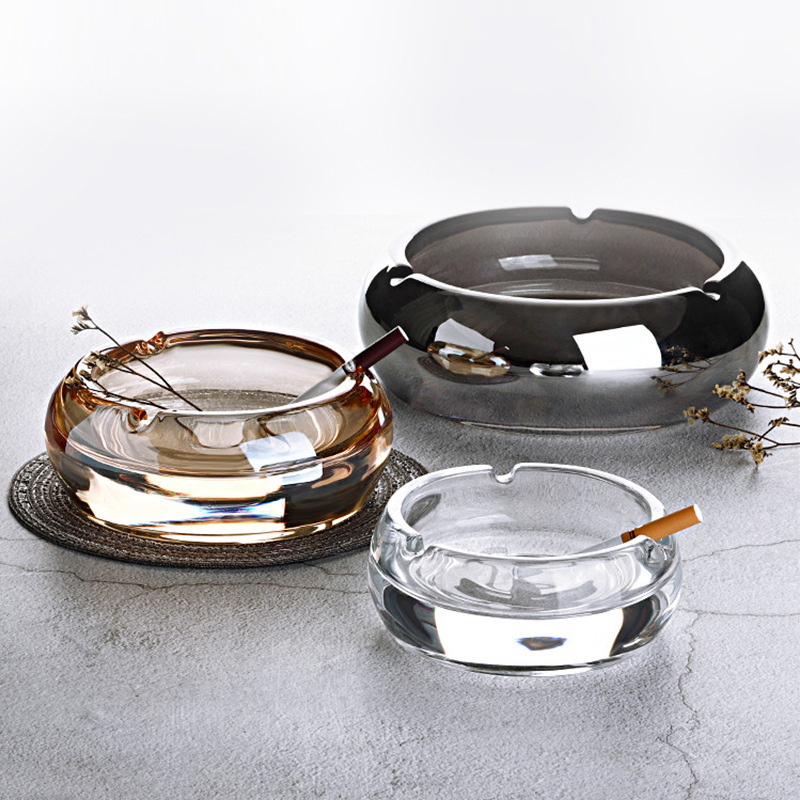 创意圆形玻璃烟灰缸三卡槽烟灰碟客厅摆件灭烟器防飞灰烟灰缸