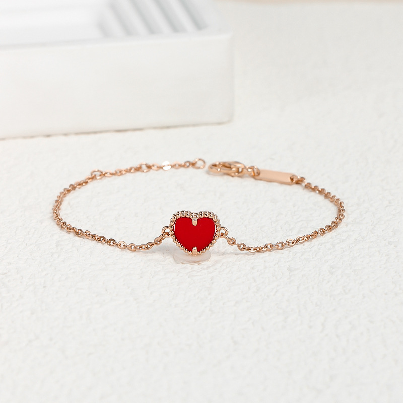 本命年红色爱心手链小众高级感黄铜镀玫瑰金轻奢简约百搭桃心手链