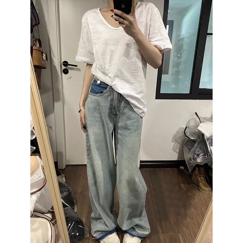 竹节棉V领短袖T恤女夏季薄款宽松显瘦半袖基础款白色上衣