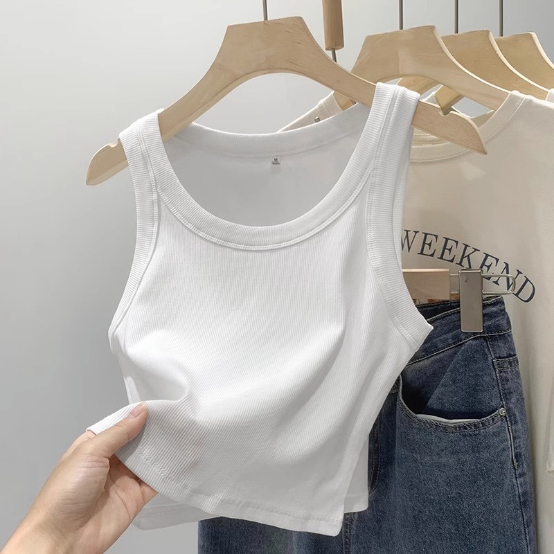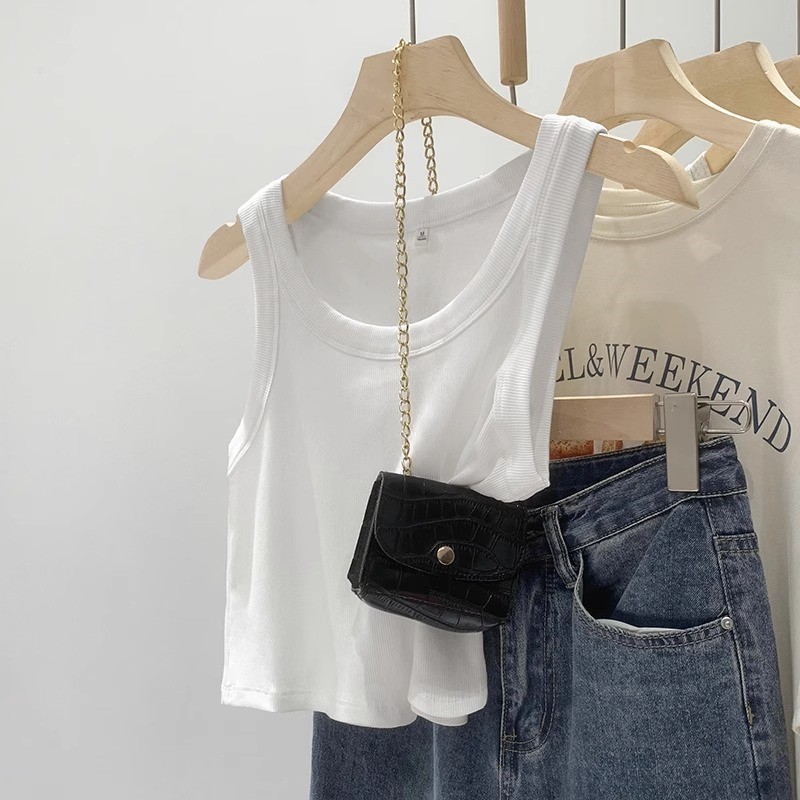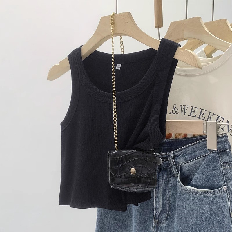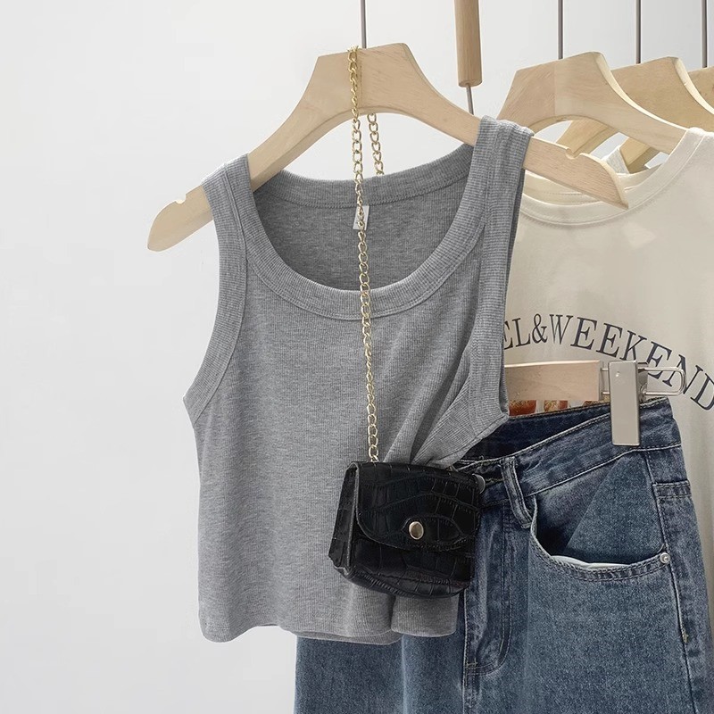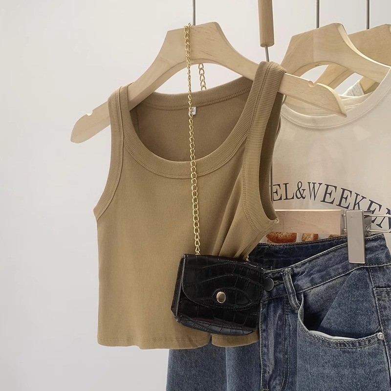 螺纹棉U领工字背心女修身辣妹无袖上衣夏百搭防走光吊带