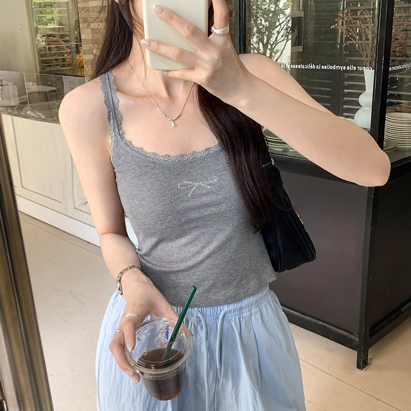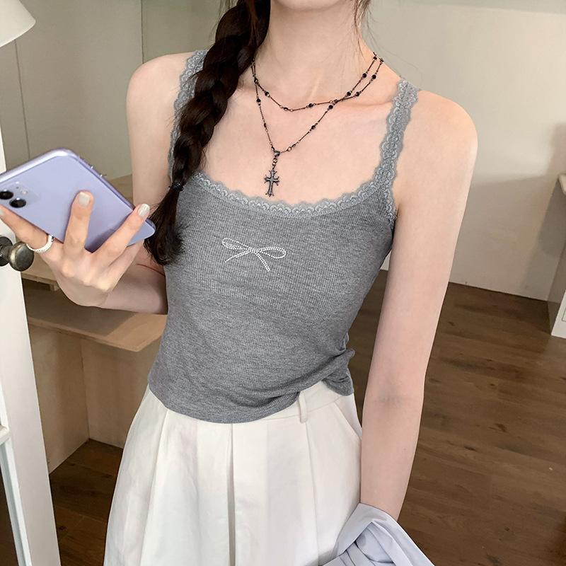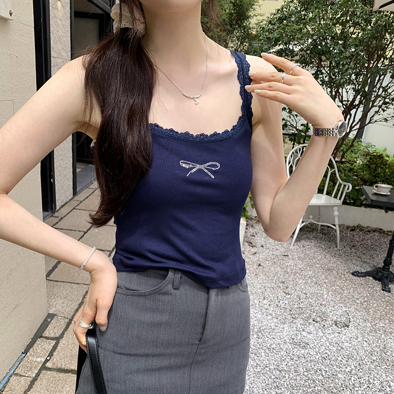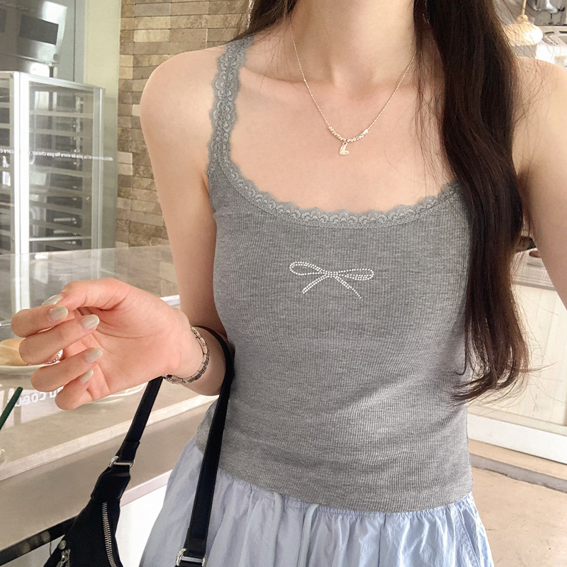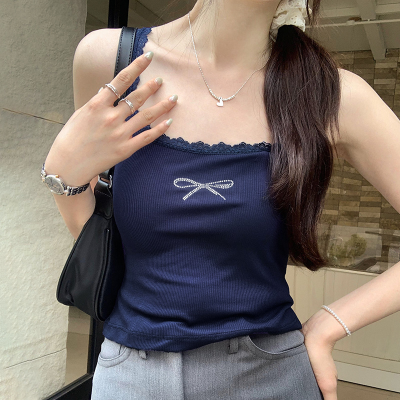 蕾丝边蝴蝶结烫钻吊带背心女夏新款甜辣chic内搭上衣打底外穿