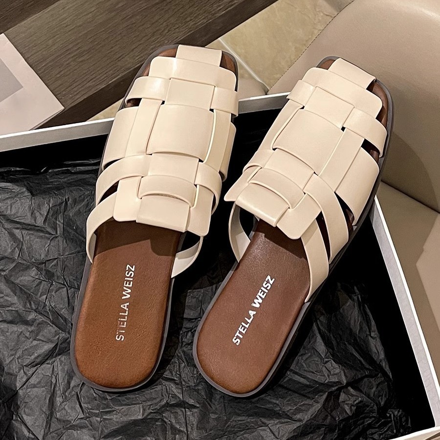 包头拖鞋女外穿2025夏季新款复古沙滩平底编织凉拖百搭懒人穆勒鞋