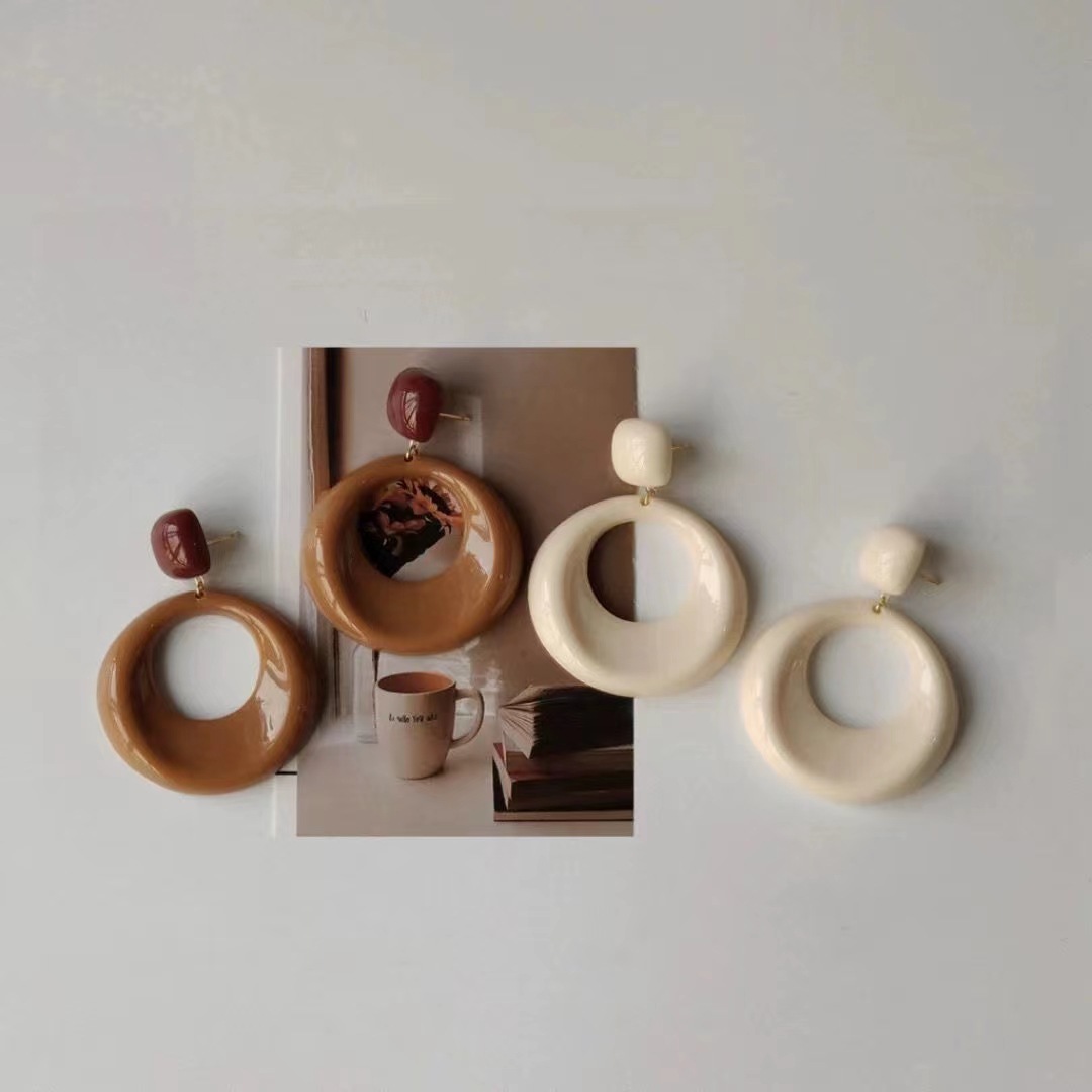 「游园惊梦」港风美式复古vintage质感树脂气质简约银针耳环耳夹