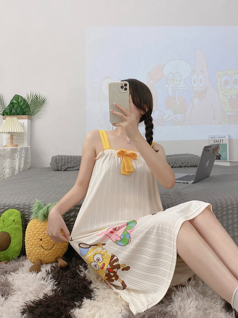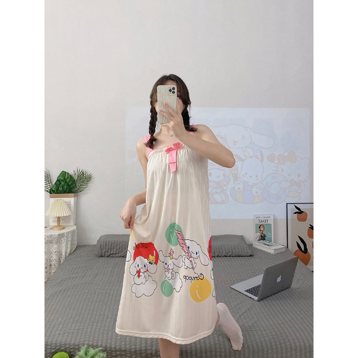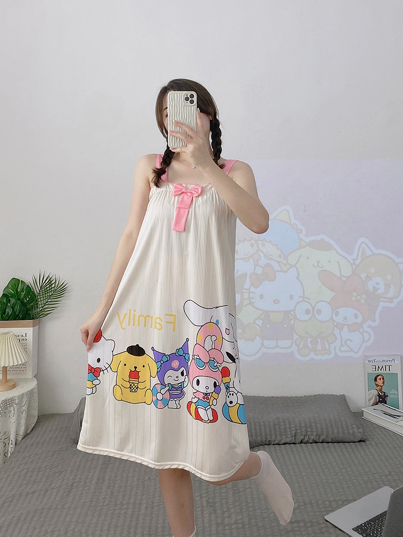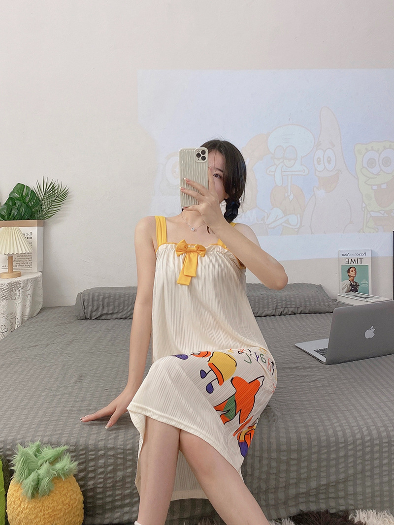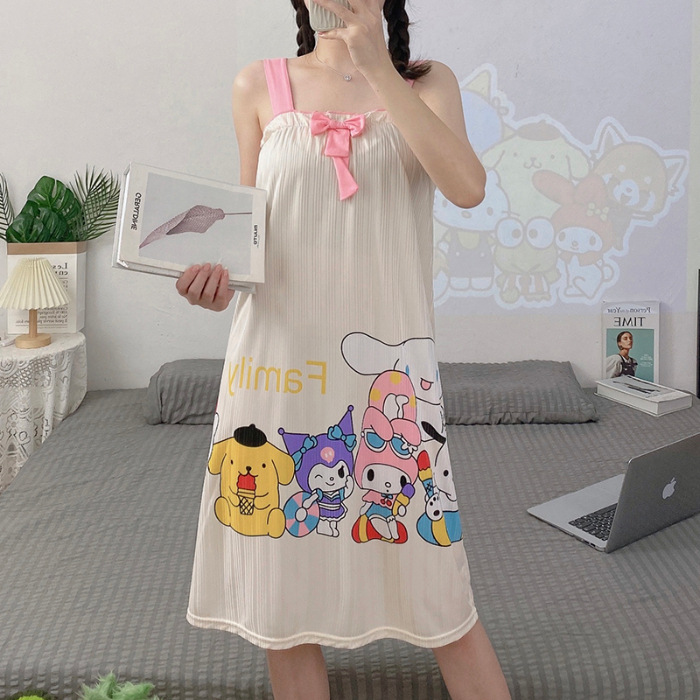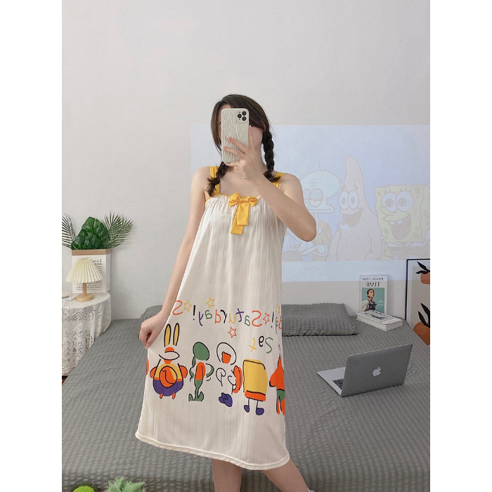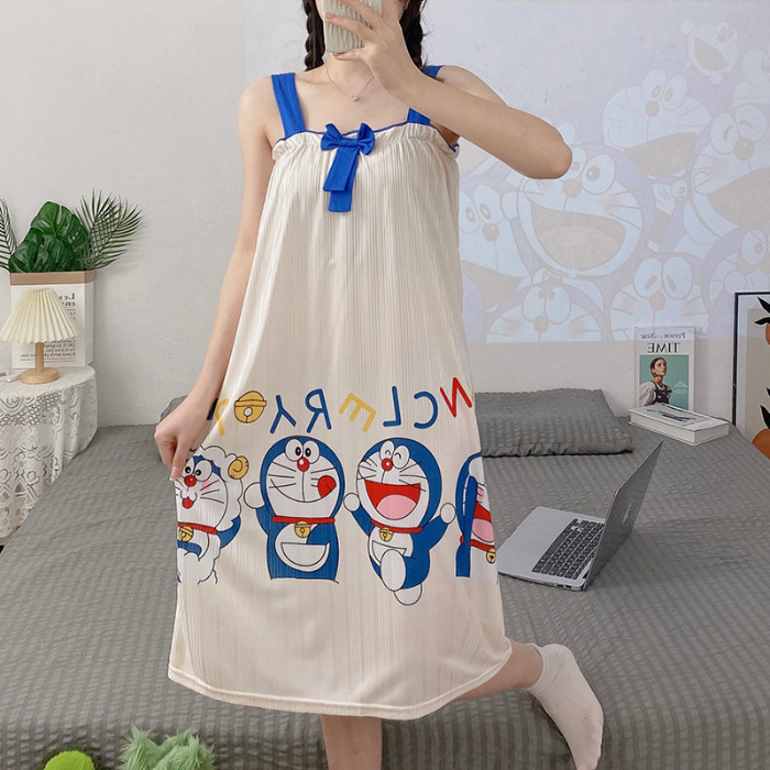 夏天睡裙女士夏季可爱卡通无袖背心睡衣连衣裙宽松大码家居服