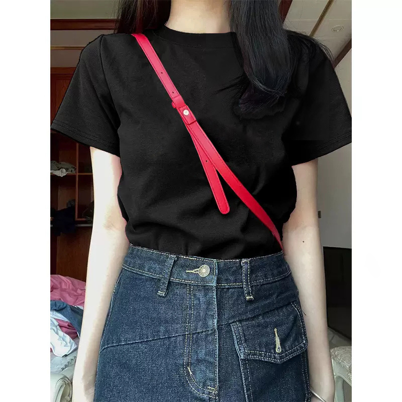 树莓色正肩t恤夏季新款韩版复古休闲宽松纯棉短袖女上衣