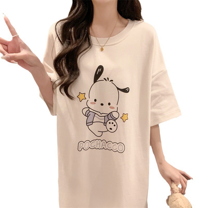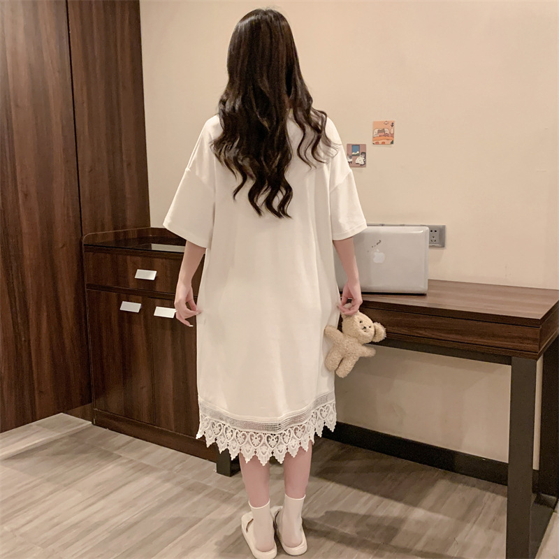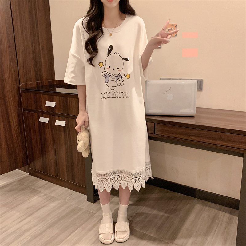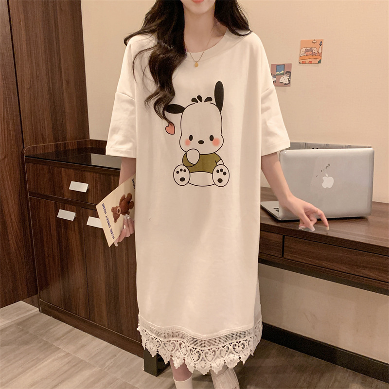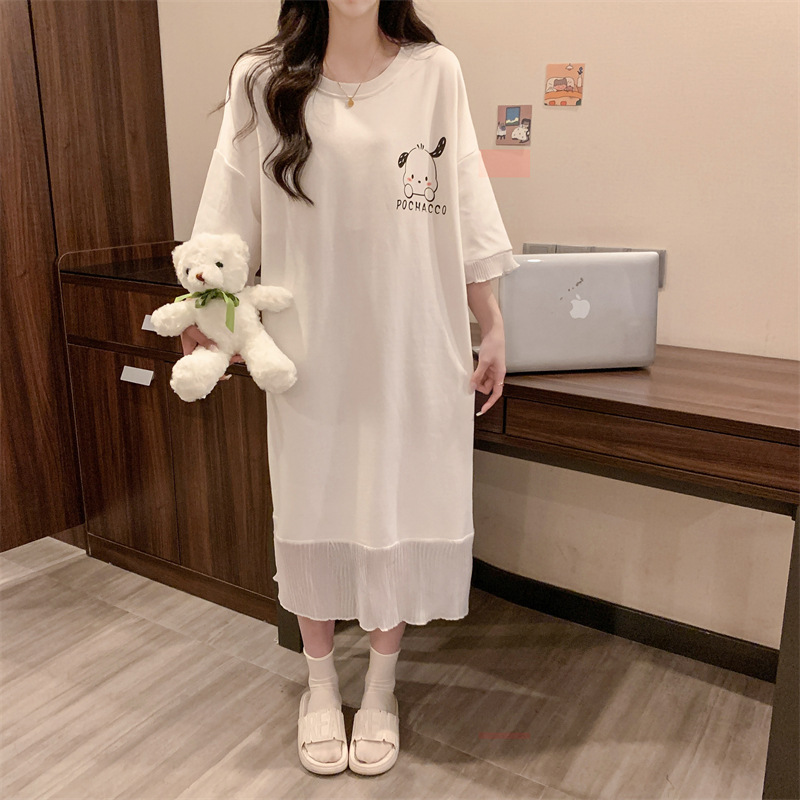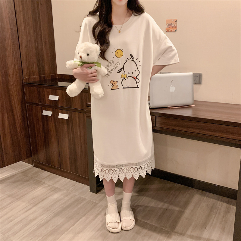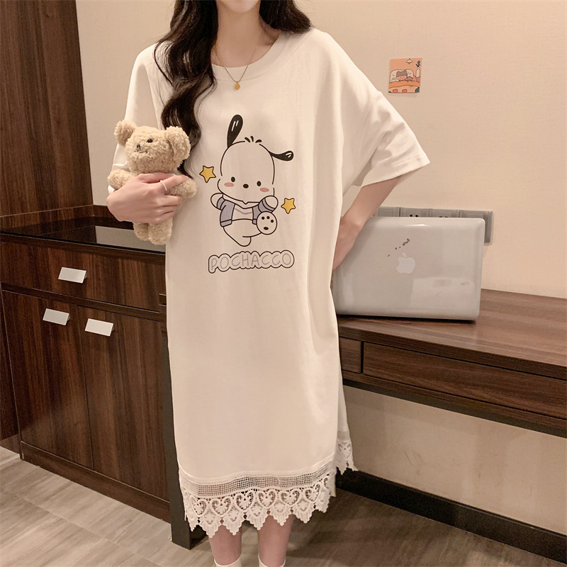 夏季睡裙女棉长裙短袖薄款甜美宽松睡衣女夏天卡通加大码家居服