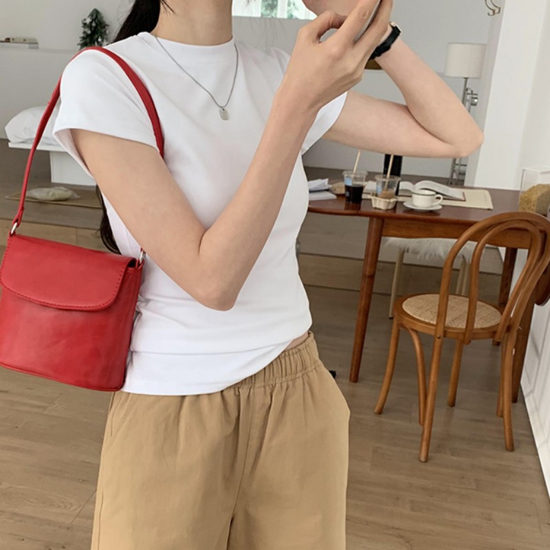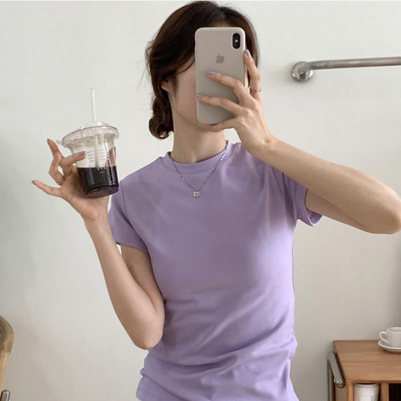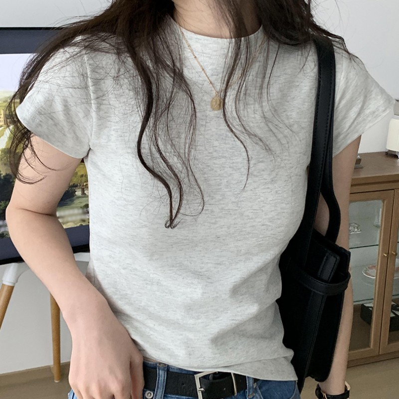 纯色正肩显瘦T恤女内搭打底衫夏季休闲简约白色短袖