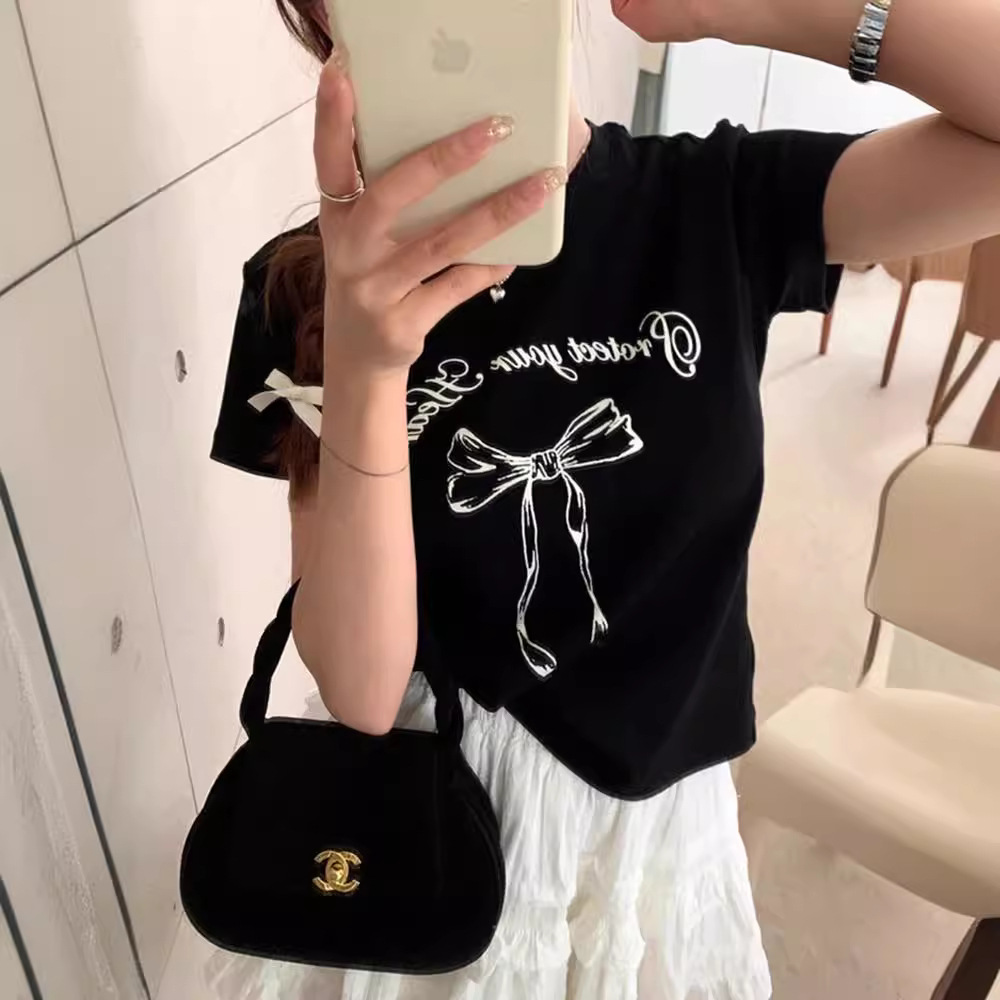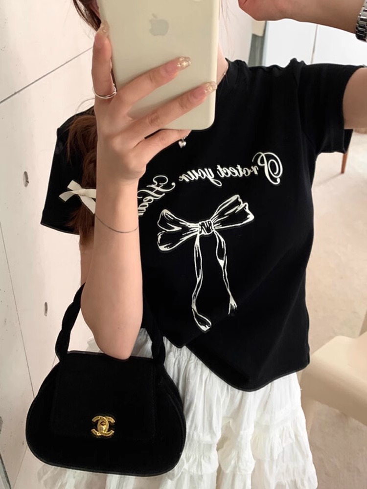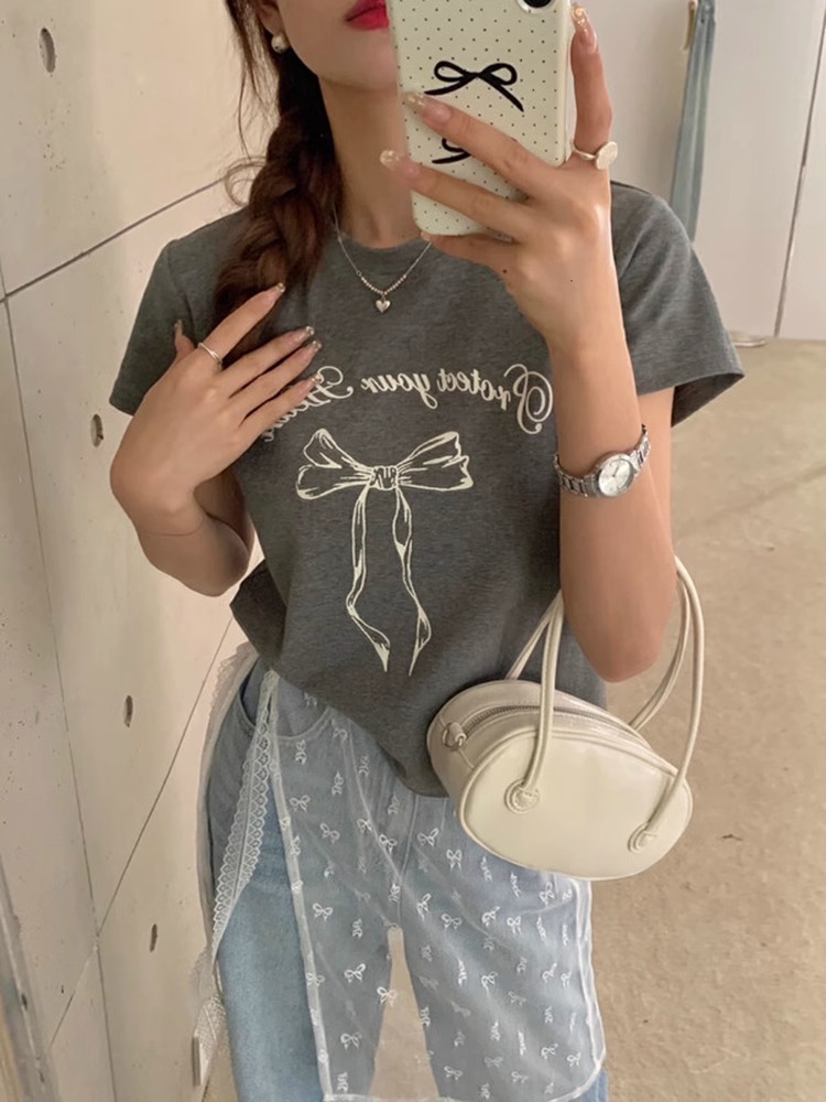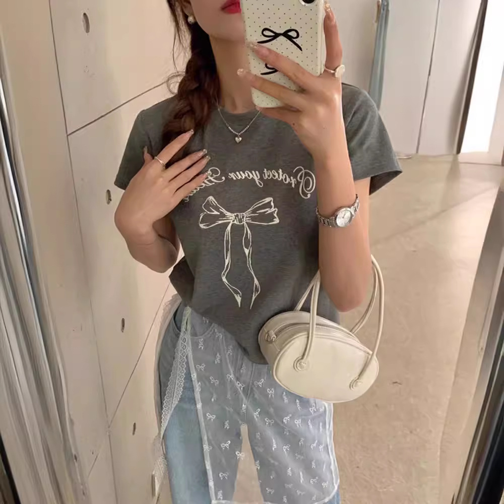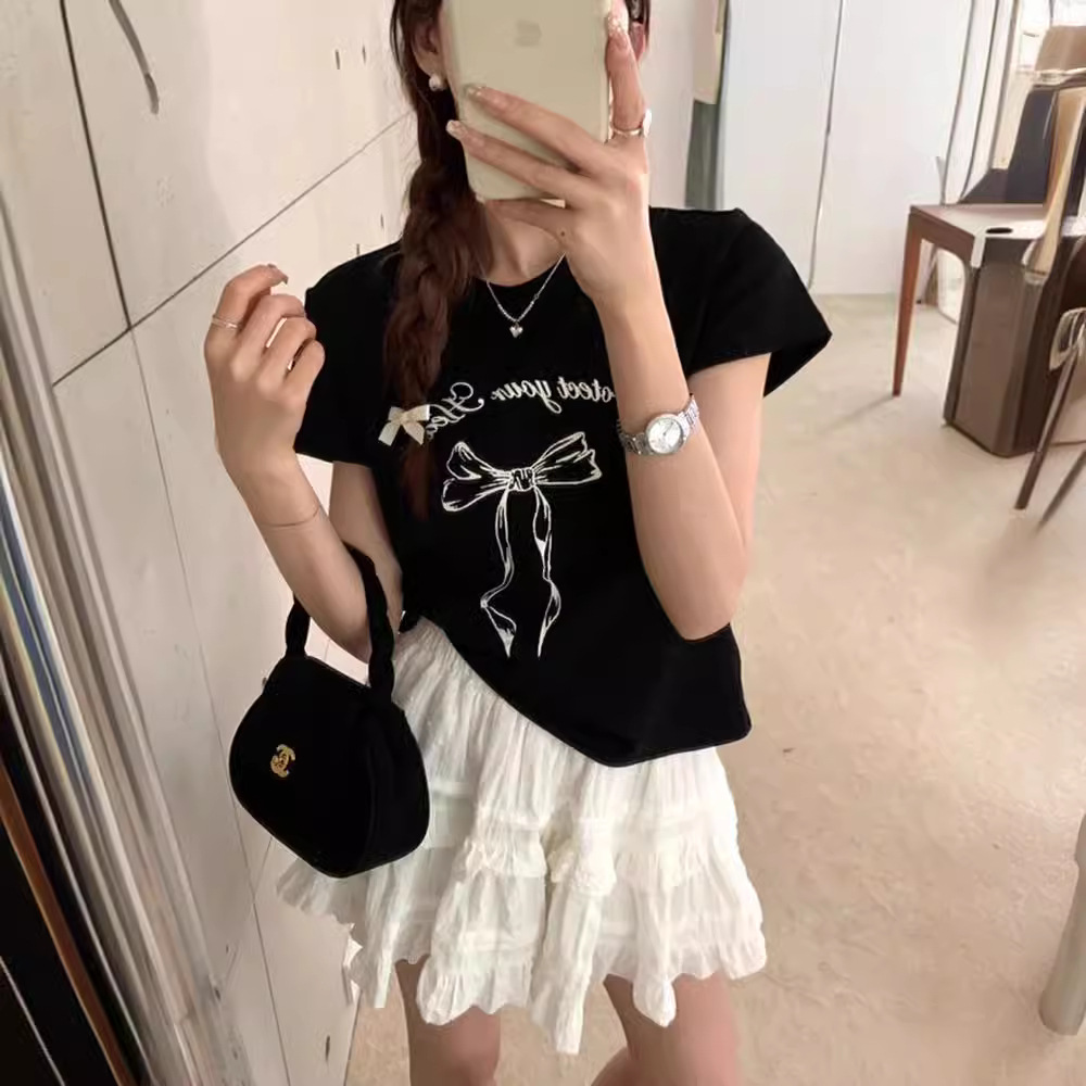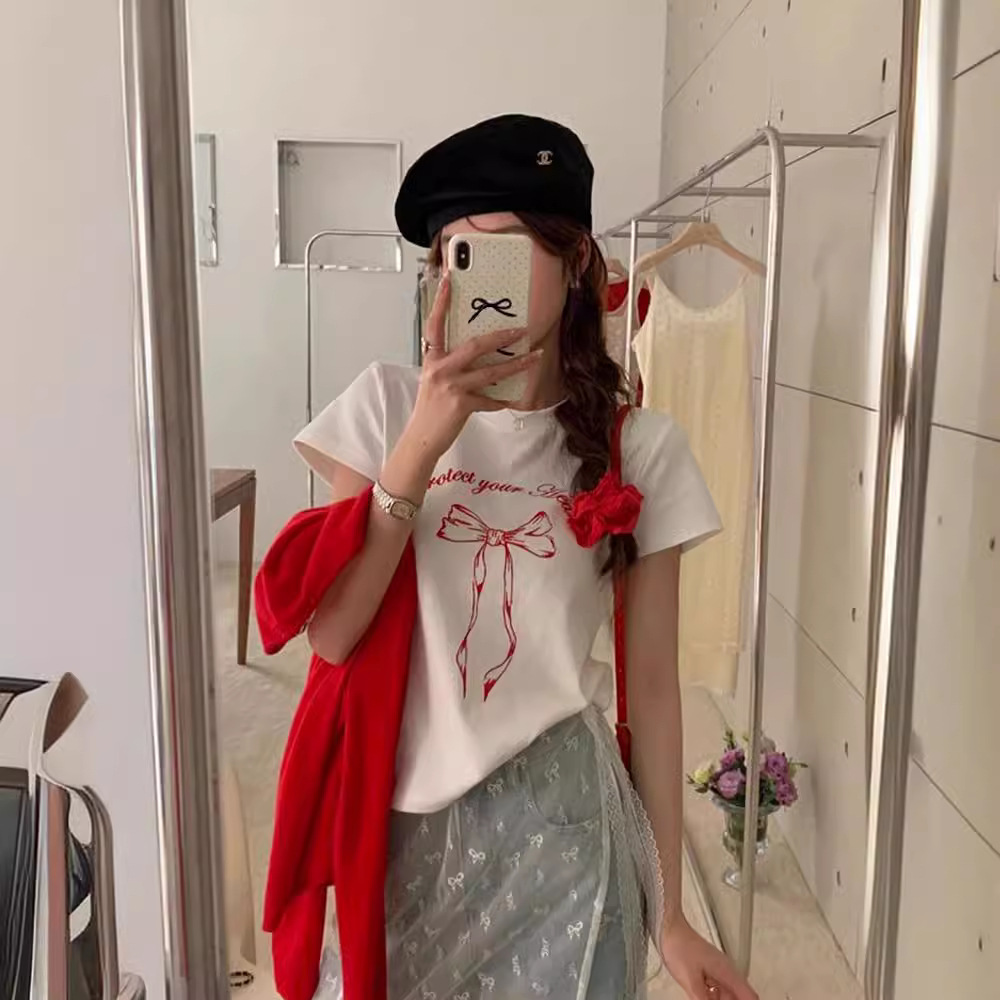甜美印花短袖t恤女夏季新款设计感小众正肩半袖宽松白色上衣