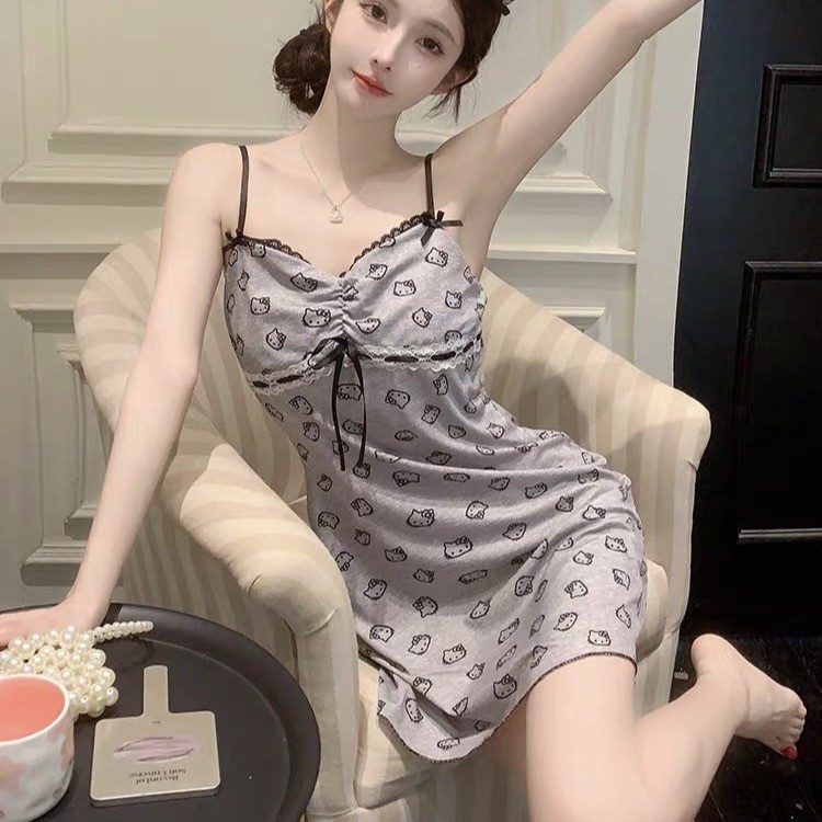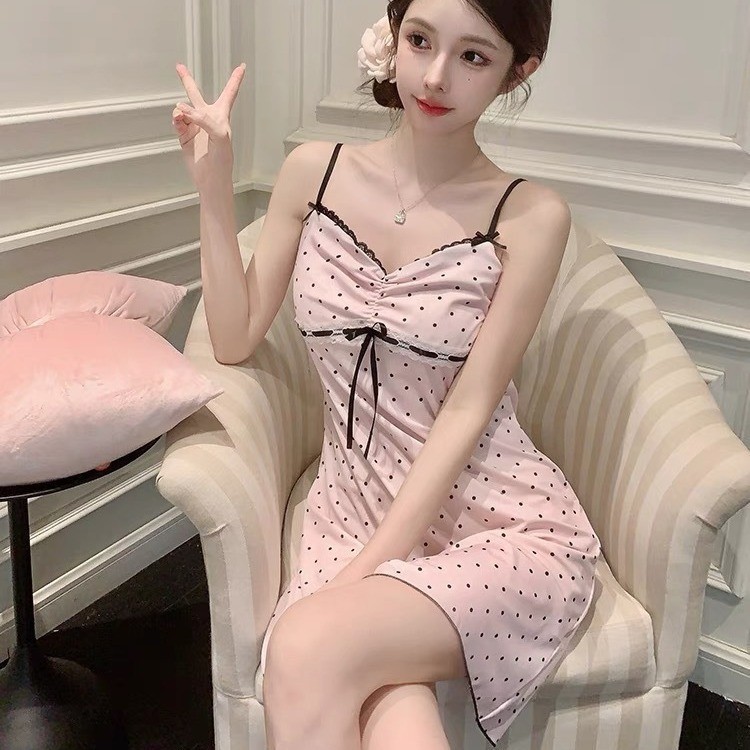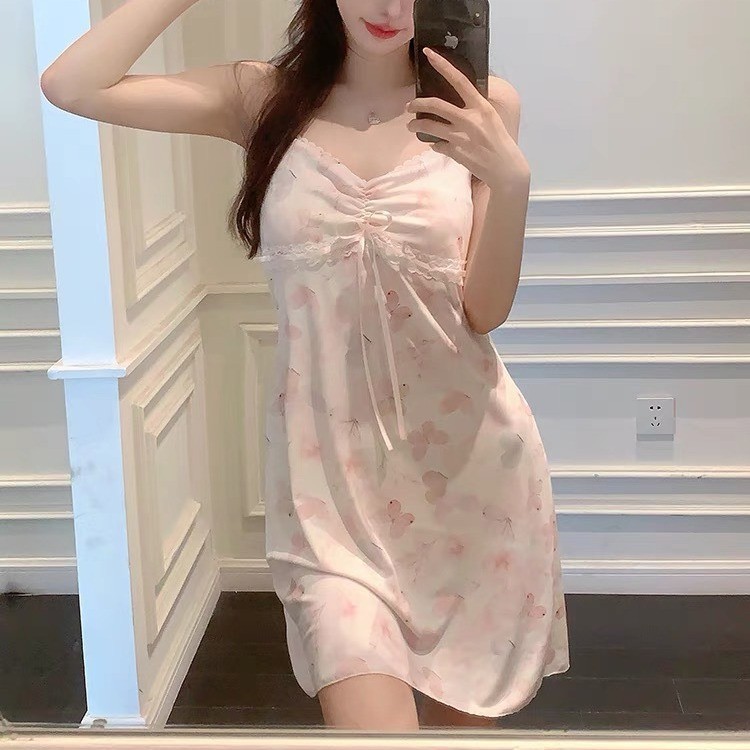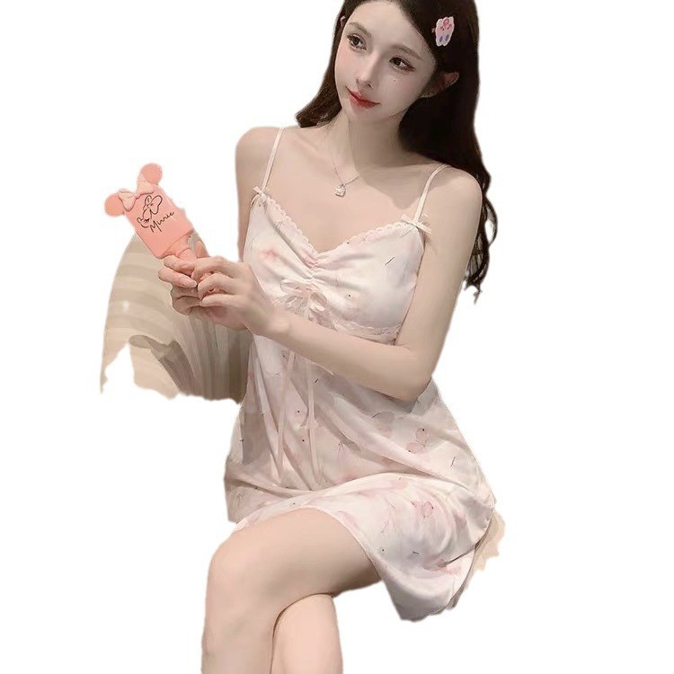 新款性感睡裙女士夏季吊带冰丝睡衣ins印花纯欲睡衣少女感