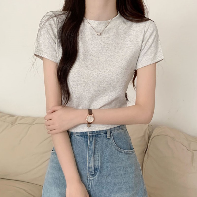基础款正肩T恤女酒红色上衣夏季短款修身辣妹ins百搭短袖