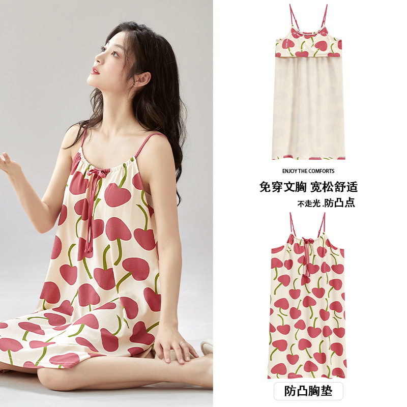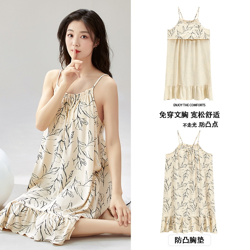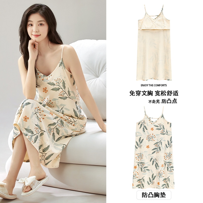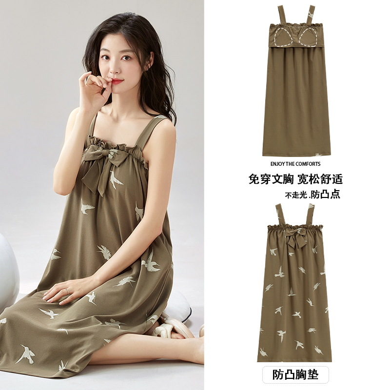 吊带睡裙女带胸垫夏天棉质睡衣女款夏季新款睡裙可外穿家居服