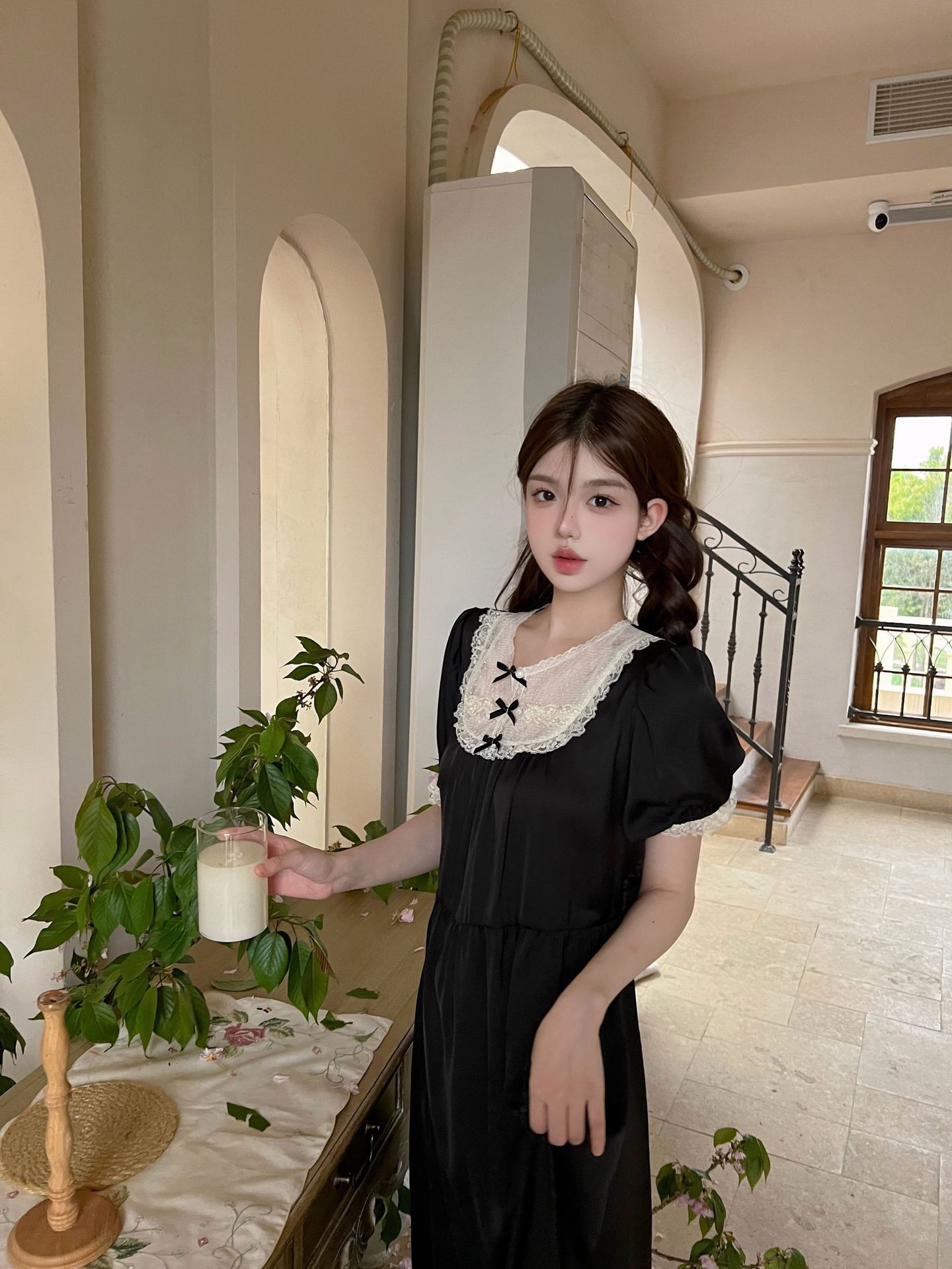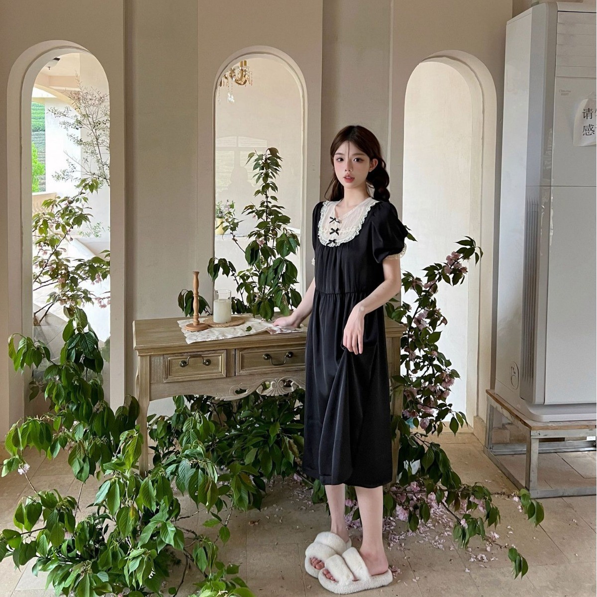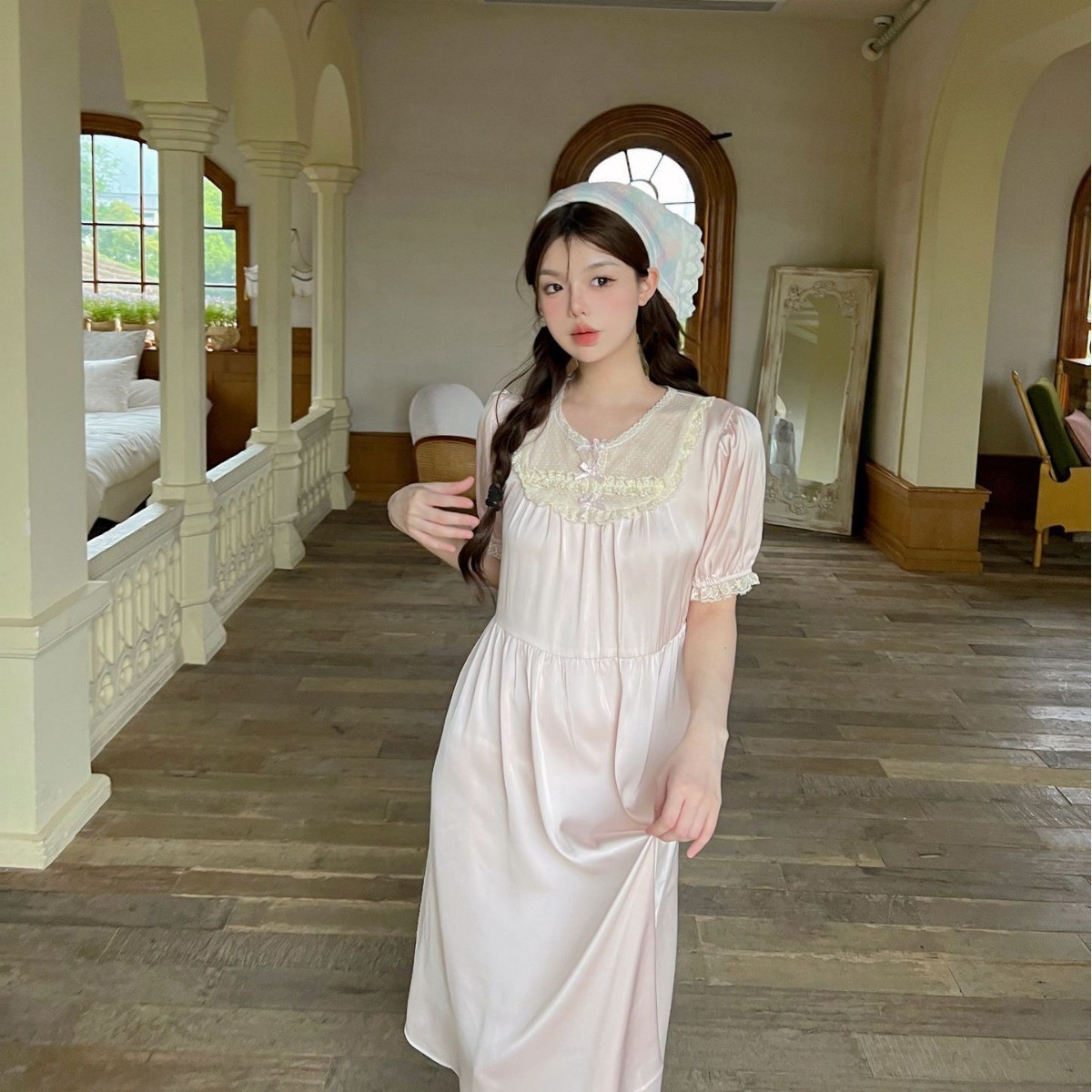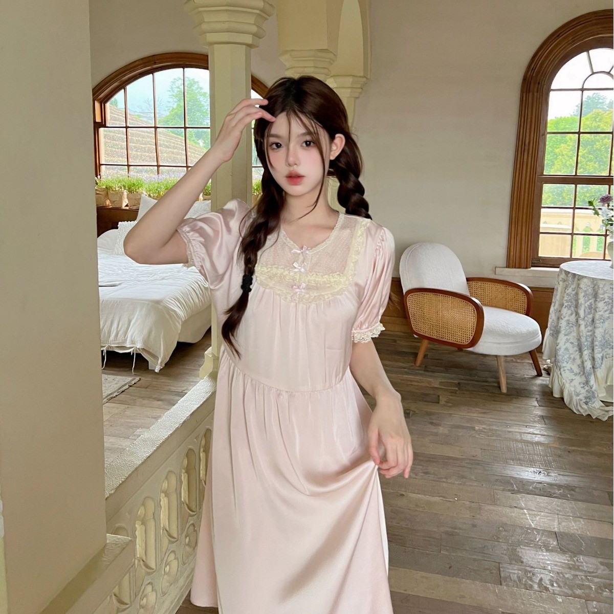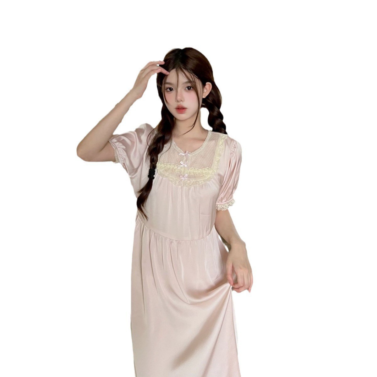 【蝴蝶结裙】春夏新款纯欲少女短袖长裙蕾丝睡裙女薄款仙女家居服