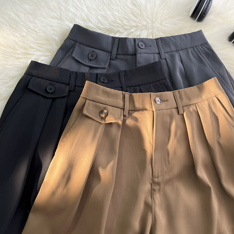 潮牌纯色阔腿休闲西装短裤男夏季原宿风ins百搭宽松坠感五分裤子