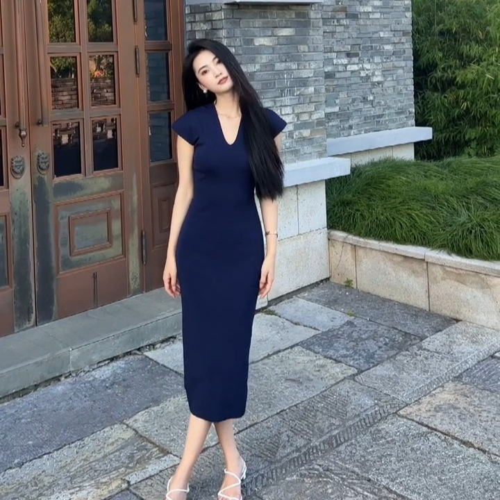 御姐穿搭性感V领针织连衣裙女装夏季新款辣妹修身包臀长裙子