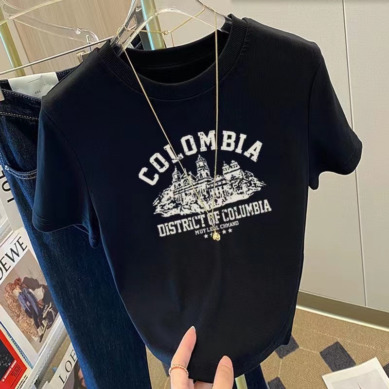 正肩短袖t恤女显瘦夏季纯棉黑色宽松体恤氛围感上衣小众百搭ins潮