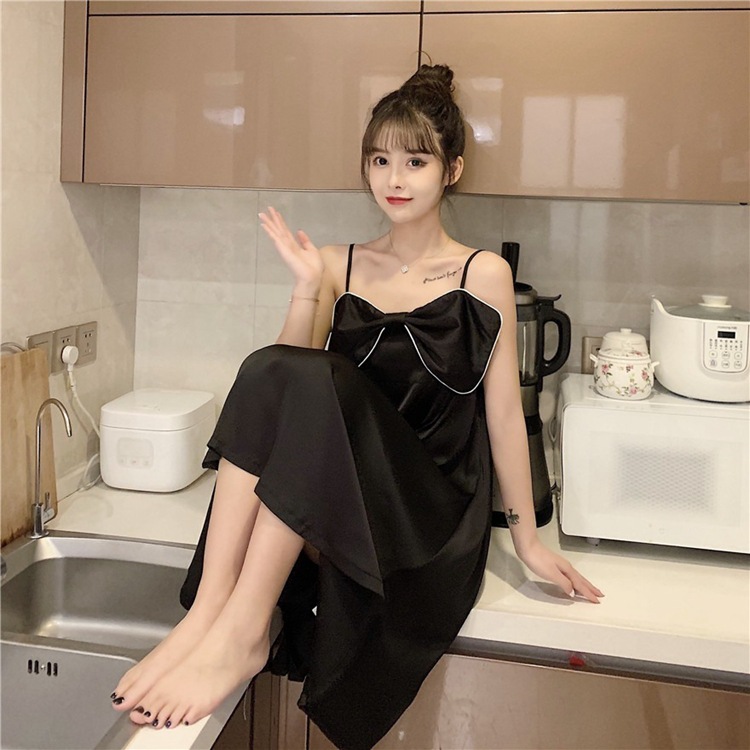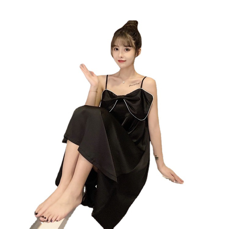 性感冰丝睡裙女士大蝴蝶结可爱少女直播学生中长款家居服
