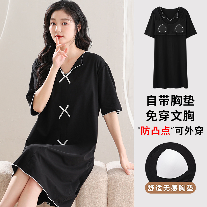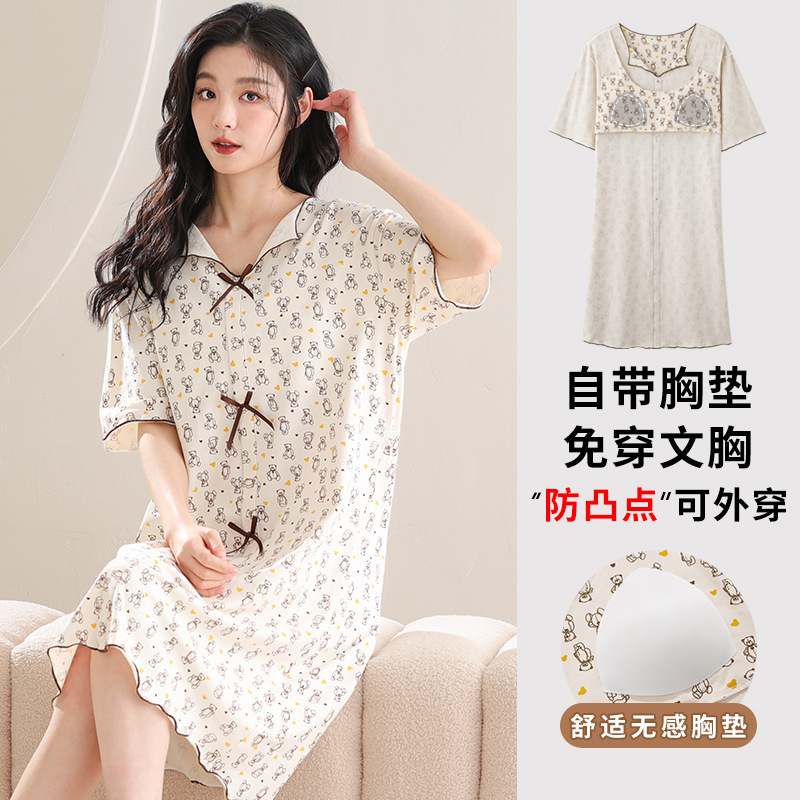 莫代尔睡裙女夏季薄款带胸垫睡衣网红风女士夏款大码家居服可外穿