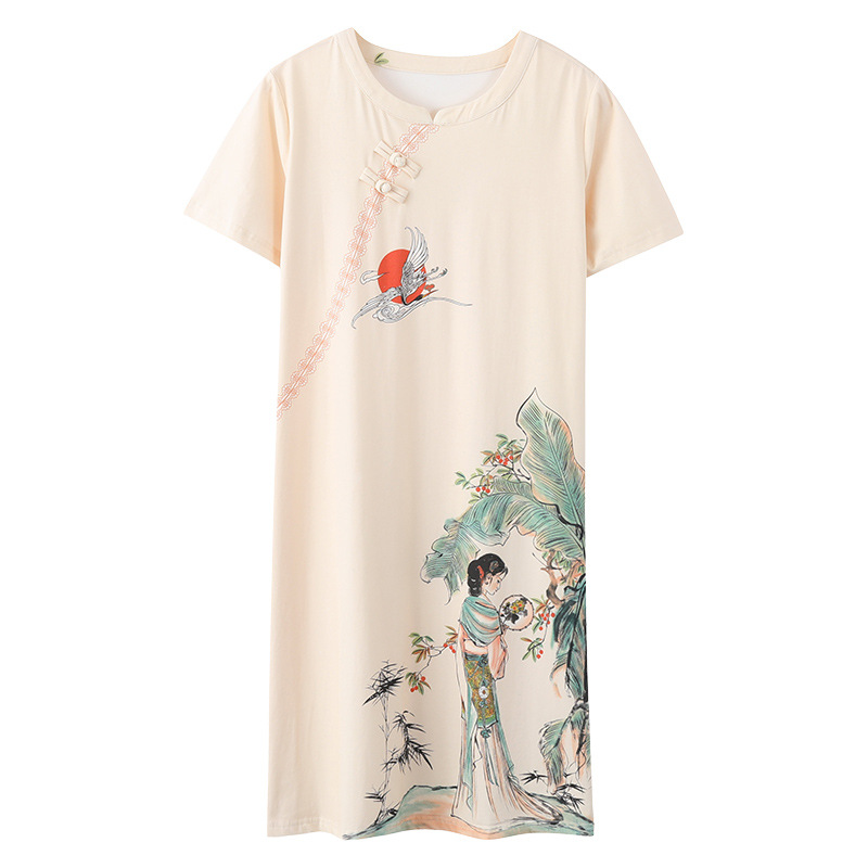 莫代尔睡裙女夏季薄款新款高级感中年妈妈夏天中裙睡衣可外穿