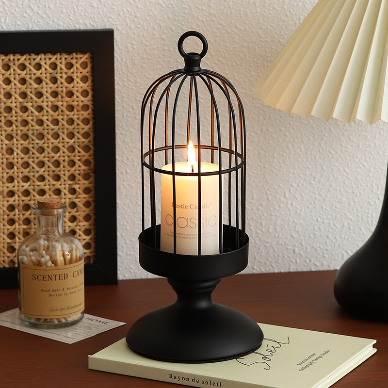 美式复古铁艺鸟笼烛台餐桌氛围感小众高级感装饰摆件香薰蜡烛底座