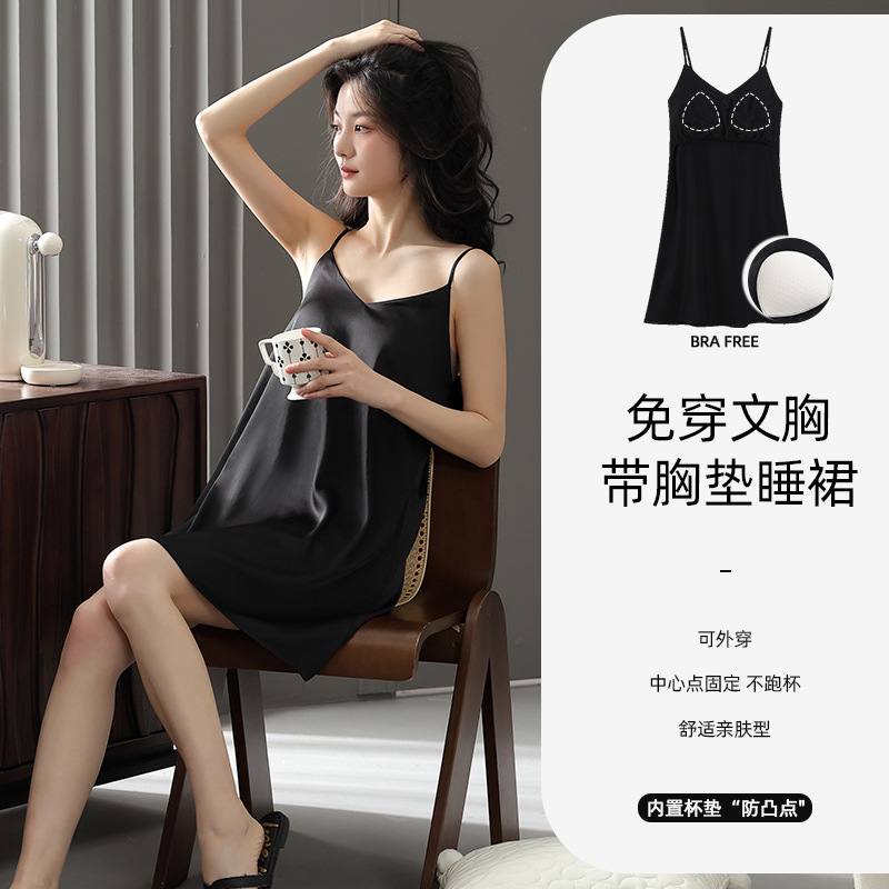 吊带睡裙女士夏季新款带胸垫性感冰丝仿真丝绸夏天连衣裙睡衣