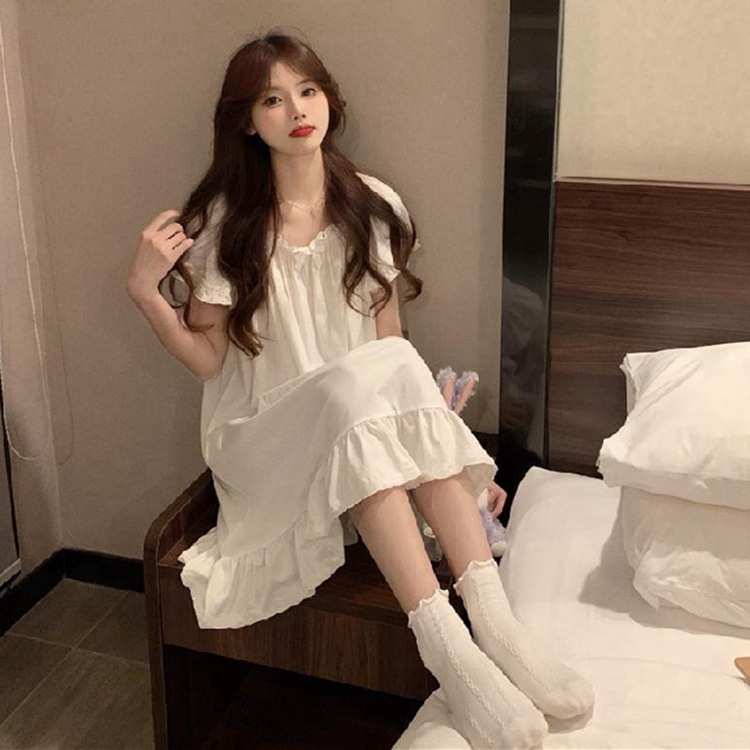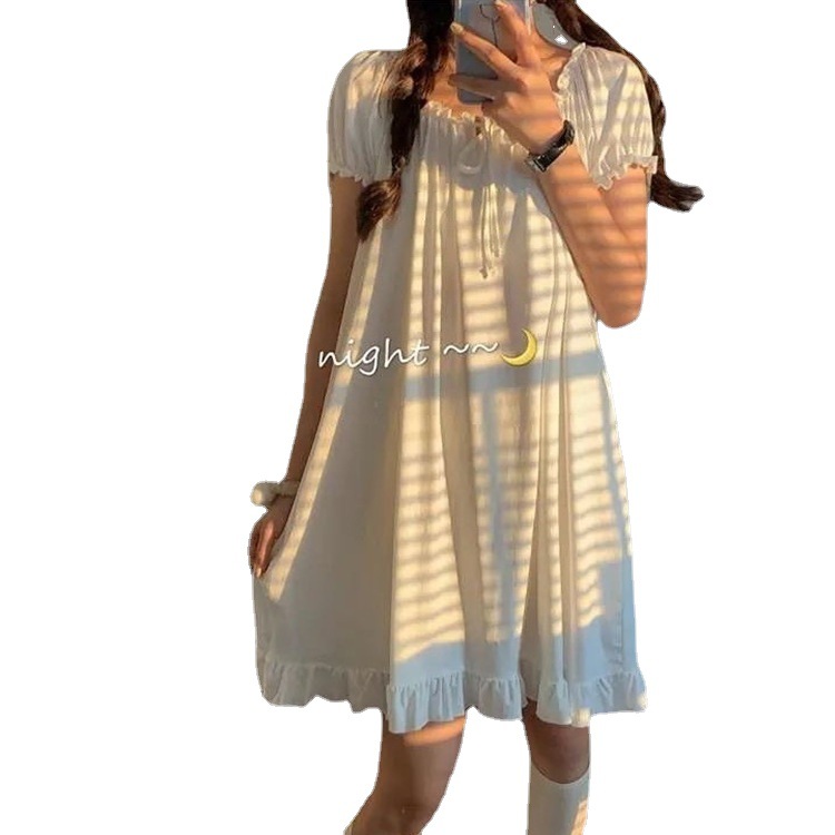 甜美公主风睡衣裙子女夏季睡裙宽松中长款胖MM可穿家居服